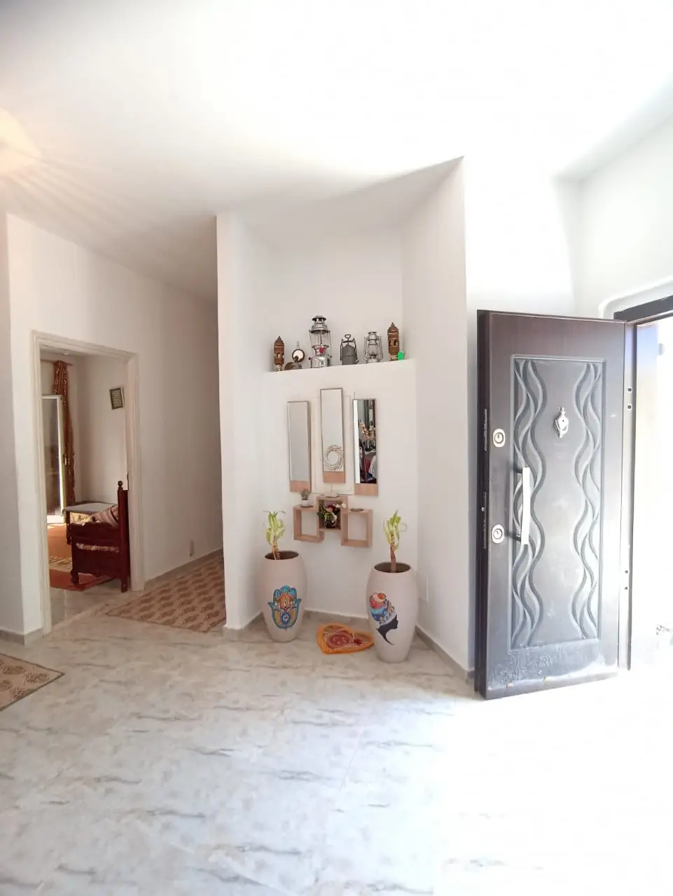 Une villa situé a Mornag dans une zone très calme, sécurisé, et proche de toutes commodités. Elle de 170 m² sur un terrain de 400 m², composée d'un salon avec séjour, une cuisine équipée par des éléments des rangements, quatre chambres a coucher avec un suite parentale et une salle de bain .