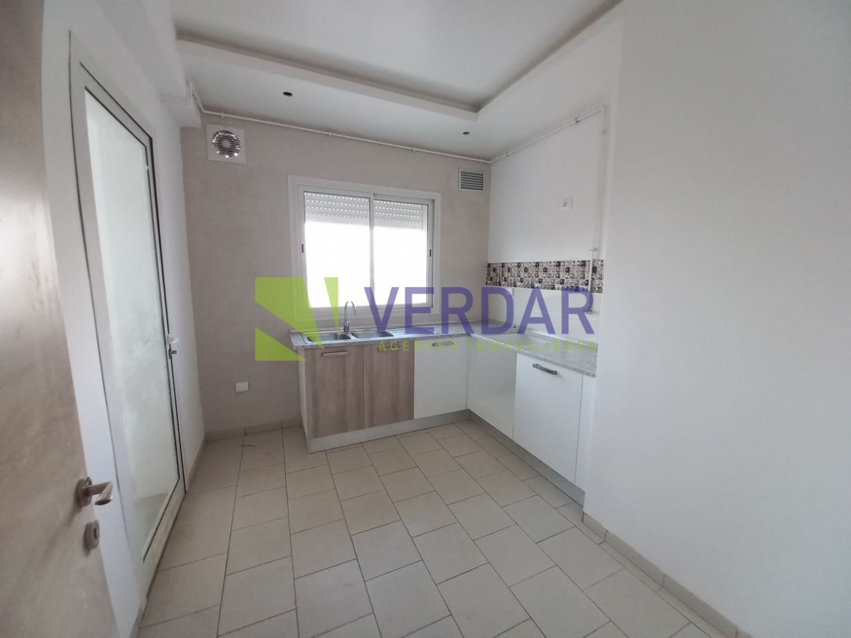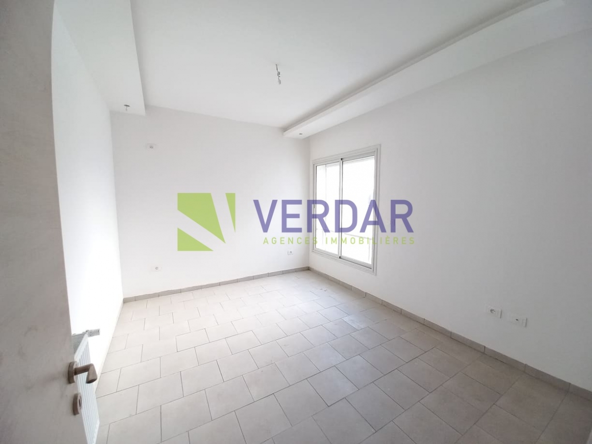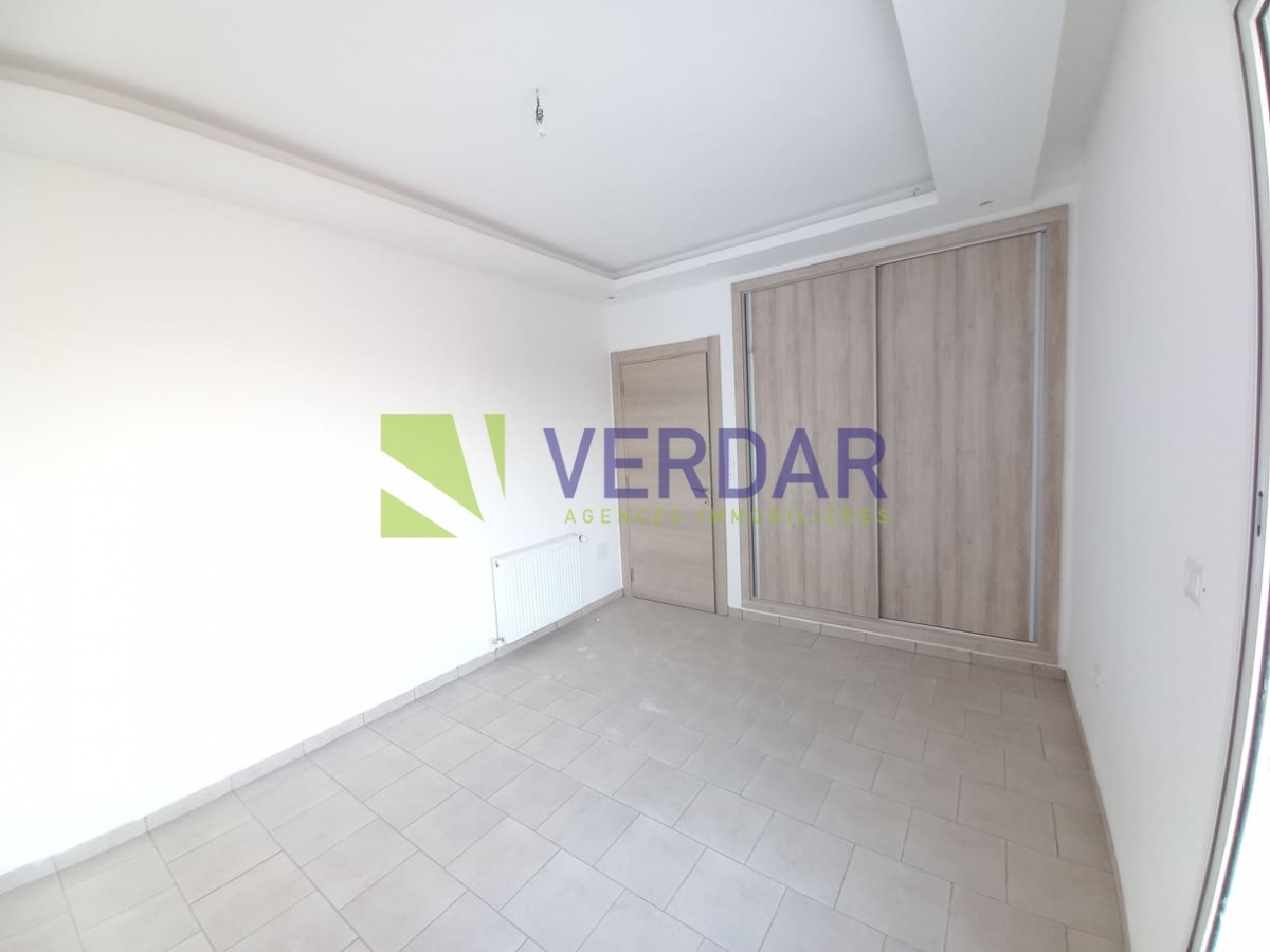 Cet appartement jamais habité est situé au deuxième étage d'une résidence gardée et proche de toutes les commodités à Megrine Jawhra. L'entrée donne sur la pièce principale. Cet espace de vie jouit d'une lumière naturelle grâce à son ouverture sur un balcon. La cuisine est aménagée par des éléments de rangement et équipée d'une plaque chauffante. Elle donne accès à un séchoir exploitable. La partie nuit se compose de deux chambres à coucher et une salle de bain commune. Une place de parking sous-sol est disponible.