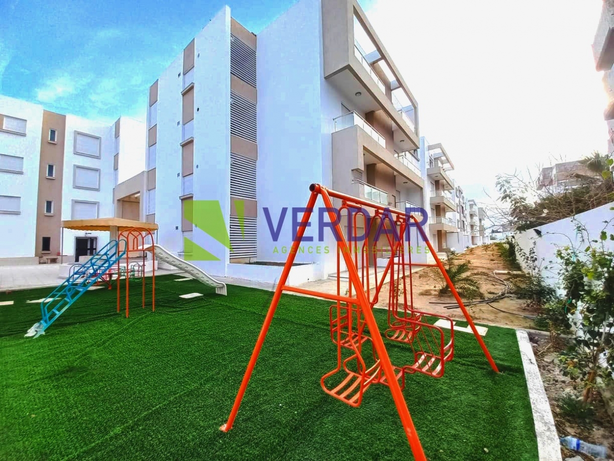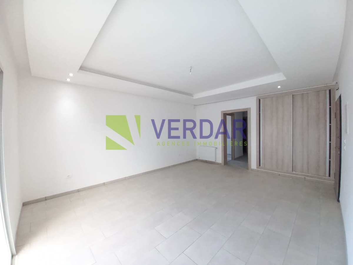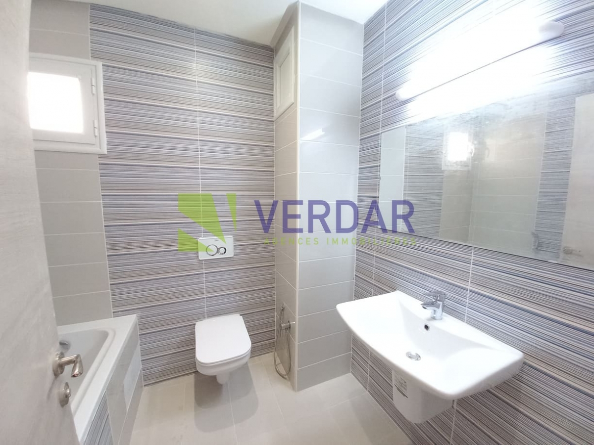 Cet appartement jamais habité est situé au deuxième étage d'une résidence gardée et proche de toutes les commodités à Megrine Jawhra. L'entrée donne sur la pièce principale. Cet espace de vie jouit d'une lumière naturelle grâce à son ouverture sur un balcon. La cuisine est aménagée par des éléments de rangement et équipée d'une plaque chauffante. Elle donne accès à un séchoir exploitable. La partie nuit se compose de deux chambres à coucher et une salle de bain commune. Une place de parking sous-sol est disponible.