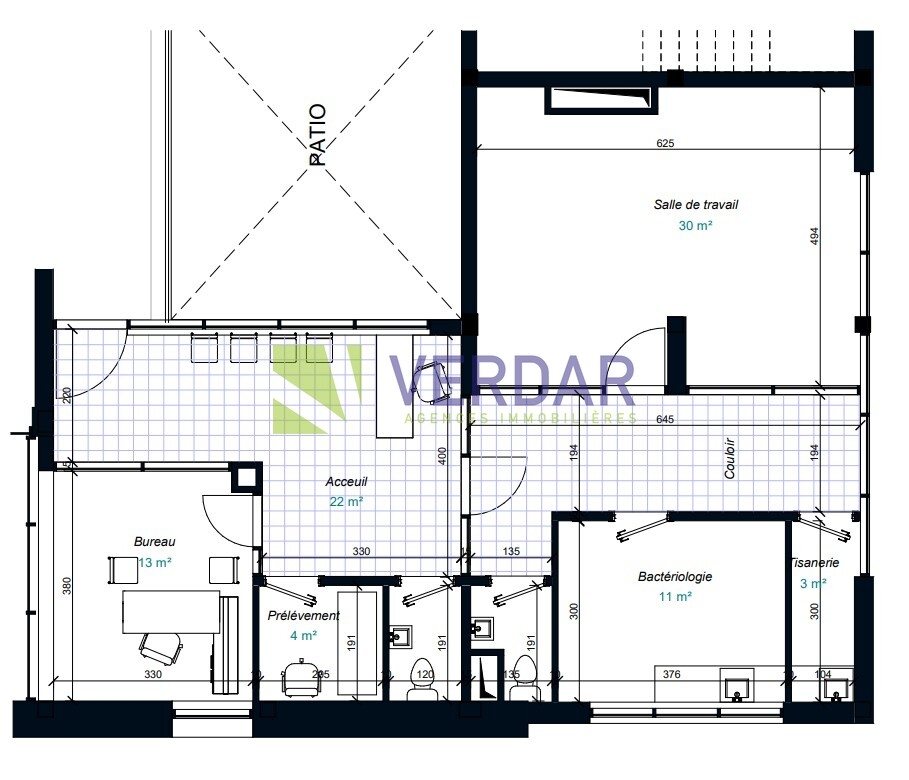 Ce laboratoire jamais servi fait partie d'un centre médical en cours de construction qui se situe sur Avenue de La République à proximité du clinique Mégrine. Il occupe le premier étage d'un centre médical équipé de double ascenseurs. Il se distingue par une architecture simple et moderne. Il est complété par une kitchenette ainsi qu'une salle d'eau. Une place de parking est réservée au sous-sol.