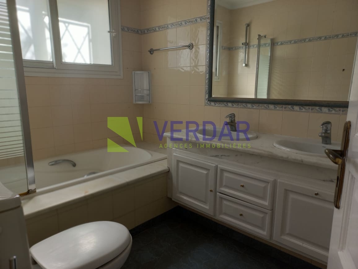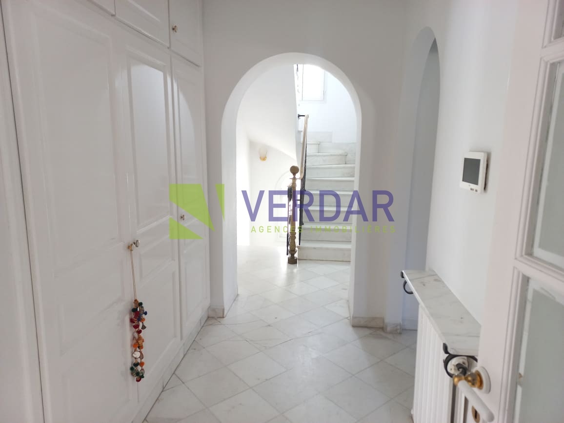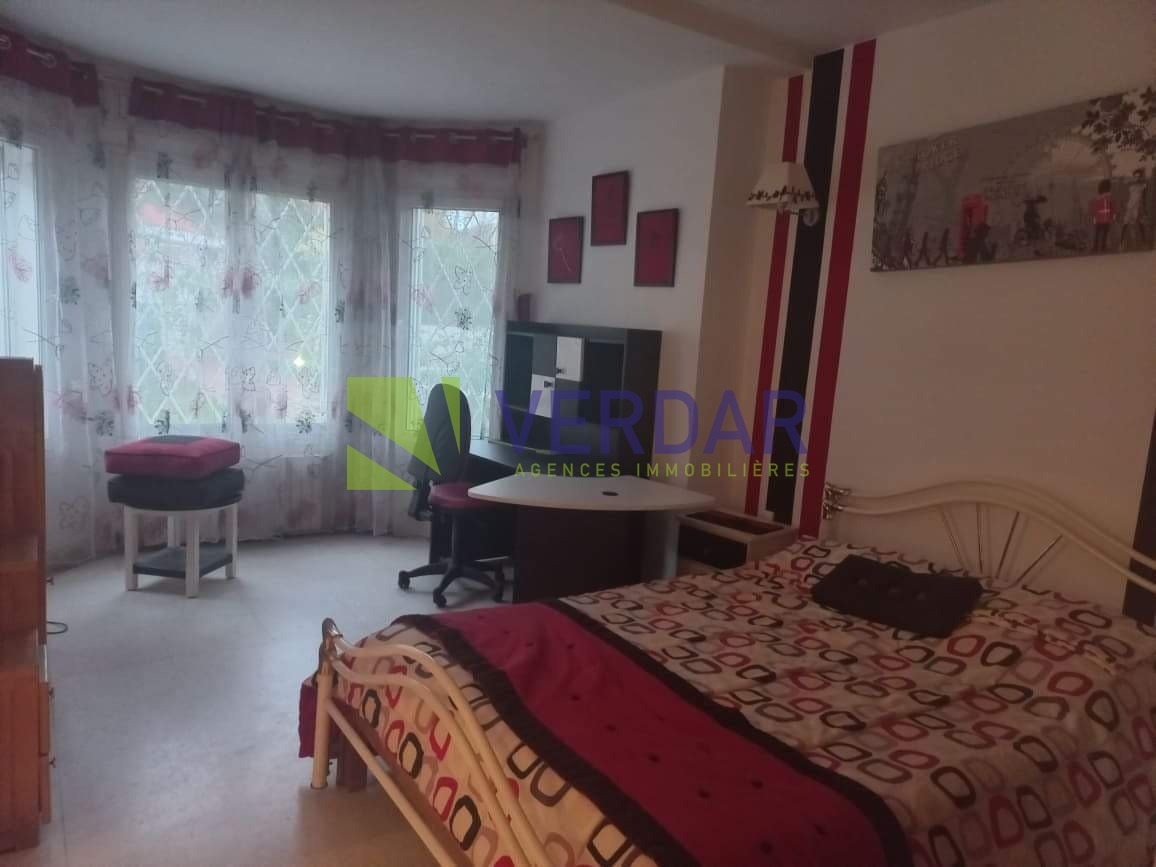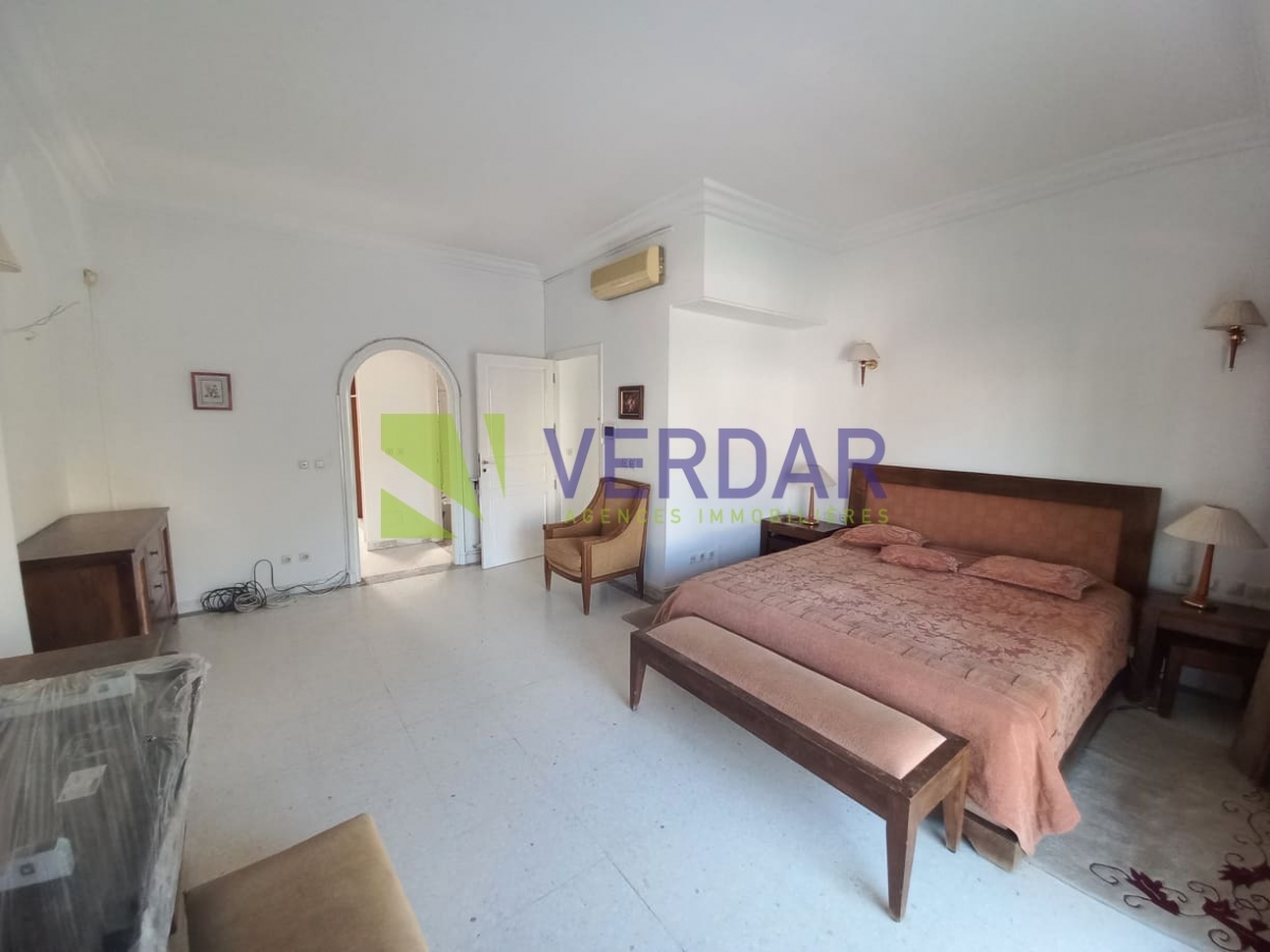 Cette propriété allie charme et confort. Elle est située d’un quartier calme et résidentiel au cœur de Megrine Coteau. Elle est caractérisée par son style coloniale. Le jardin paysagé offre un véritable espace de détente valorisé par une piscine. L’entrée donne sur un double salon avec deux cheminée et un séjour qui constituent l'espace de réception. La partie jour est composée d’une cuisine entièrement équipée et aménagée, une salle d'eau pour les invités, une salle à manger et un deuxième séjour donne sur la piscine. Le compartiment nuit est composé de deux suites chacune est avec sa propre salle de bain et une chambre à coucher avec salle de douche à l’extérieure. A l’étage on trouve le compartiment parent qui offre une chambre à coucher donnant sur un balcon avec chambre de dressing et une salle de bain. Un studio pour le gardien est également disponible. Un abri pour trois voitures disponible pour les futurs habitants.
