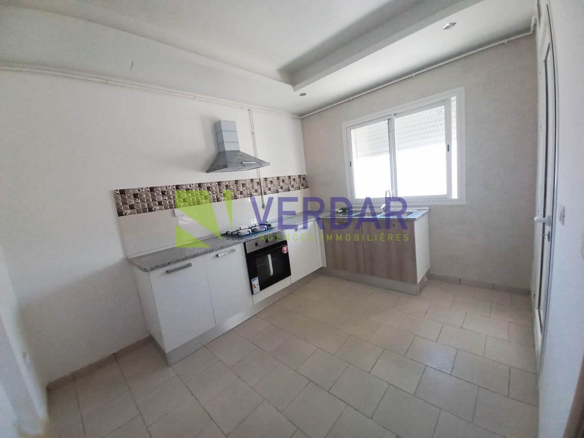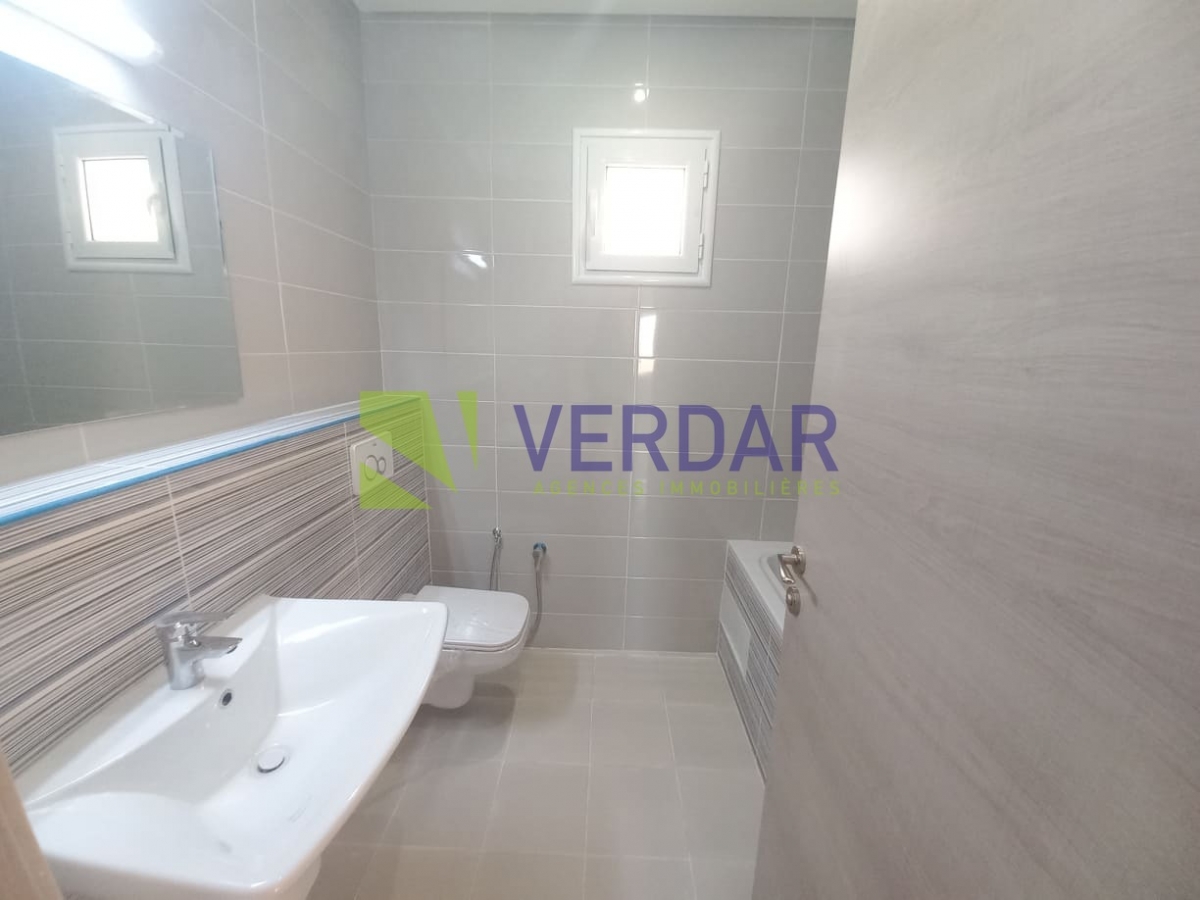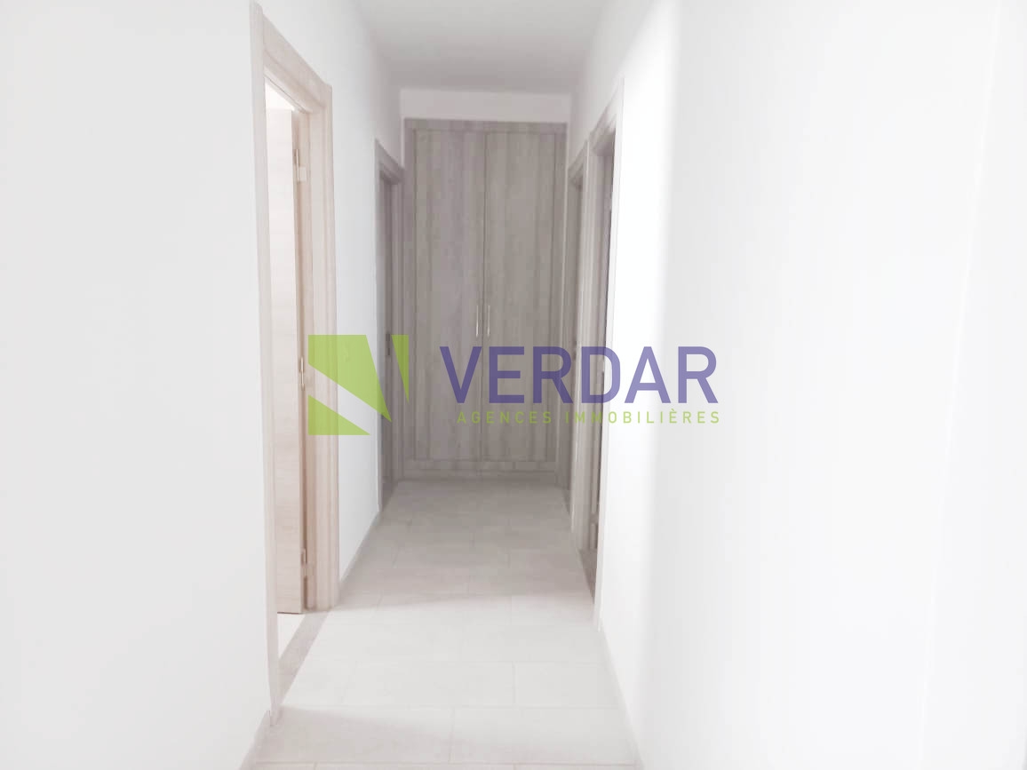 Cet appartement jamais habité est situé au troisième étage d'une résidence gardée et proche de toutes les commodités à Megrine Jawhra. L'entrée donne sur la pièce principale. Cet espace de vie jouit d'une lumière naturelle grâce à son ouverture sur un balcon. La cuisine est aménagée par des éléments de rangement et équipée d'une plaque chauffante, une hotte aspirante et un four électrique. Elle donne accès à un séchoir exploitable. Un dressing dans le couloir est disponible pour plus de rangement. La partie nuit se compose de trois chambres à coucher qui se partagent une salle de bain et une salle d’eau. Deux places de parking sous-sol sont disponibles.