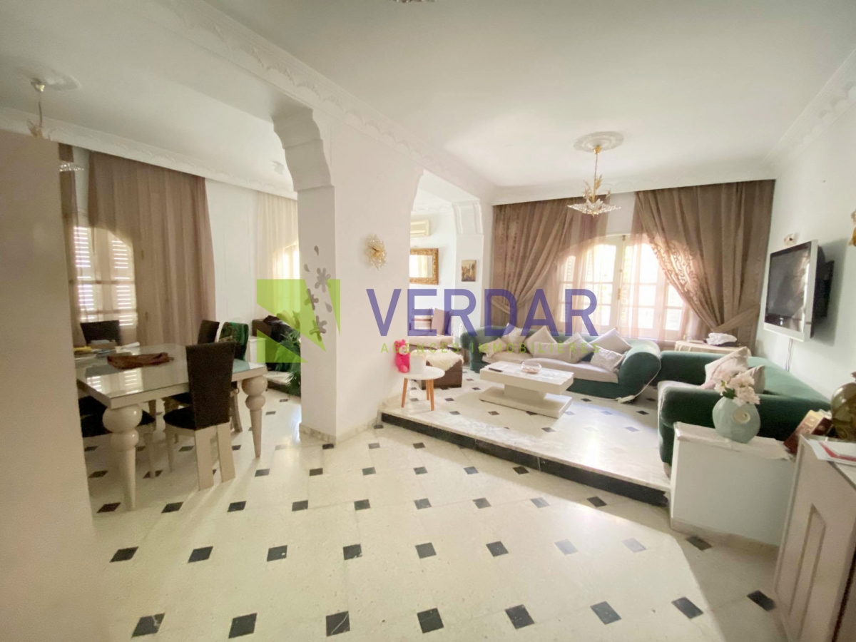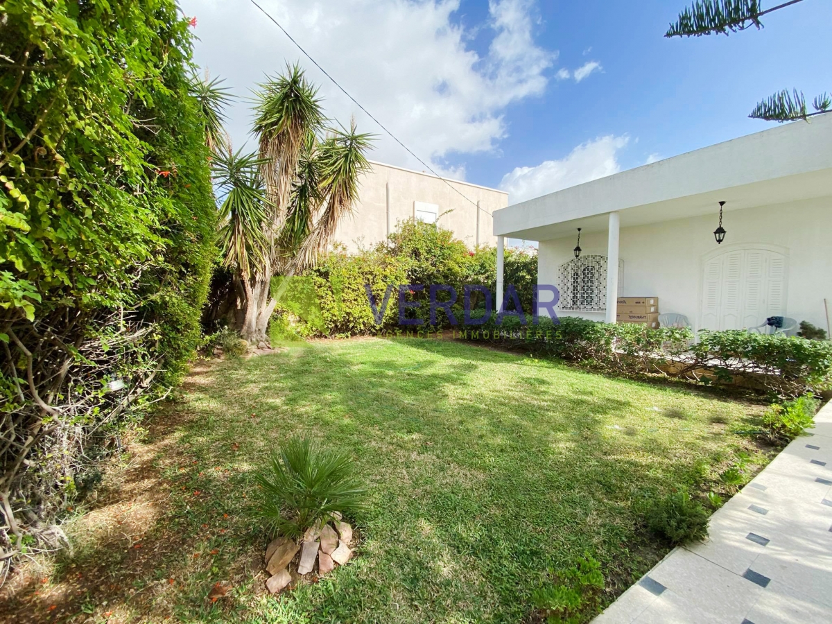 Cette villa de plain-pied est de 150m² sur un terrain de 541m², elle est située dans un quartier calme et résidentiel, doté d'un bon voisinage. Son jardin offre un véritable espace de détente. L'entrée donne à droite sur un espace de vie lumineux qui permet d’agencer un double salon et une salle à manger. La cuisine agencée et équipée d'une plaque de cuisson, d’une hotte aspirante et d'un four électrique. La partie nuit se compose d’une suite parentale et de deux chambres à coucher qui se partagent une salle de bain. À l'extérieur un abri de voiture et un studio sont également disponible. La villa est équipée par un chauffage central et une climatisation en Split système.