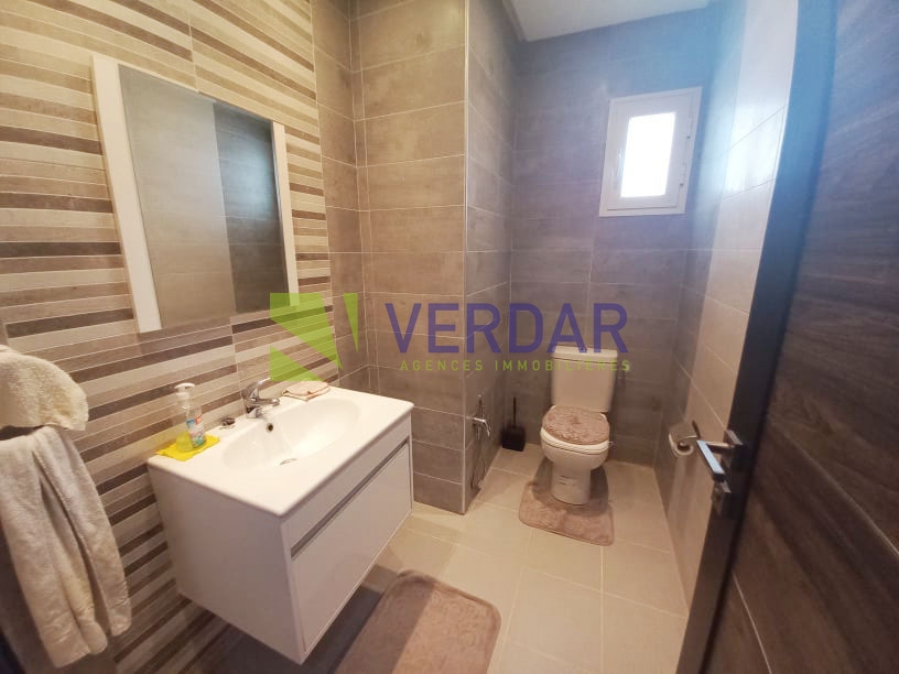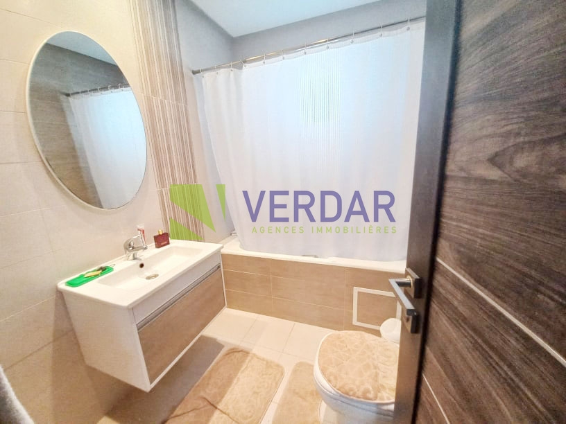 Cet appartement est situé dans un quartier calme et résidentiel à La Nouvelle Madina. L’entrée donne sur un hall qui dessert un salon lumineux grâce à ses ouvertures sur un balcon. La cuisine est aménagée et équipée d'une plaque de cuisson, d'une hotte aspirante et d'un four électrique. Une salle d’eau pour les invités complète la partie jour. Deux dressing dans le couloir sont disponibles pour plus de rangement. Le compartiment nuit abrite une suite parentale avec sa propre salle de douche et sa chambre de dressing et deux autres chambres à coucher qui se partagent une salle de bain commune. Le chauffage central et la climatisation par Split-système sont disponibles. Un place de parking sous-sol est disponible.