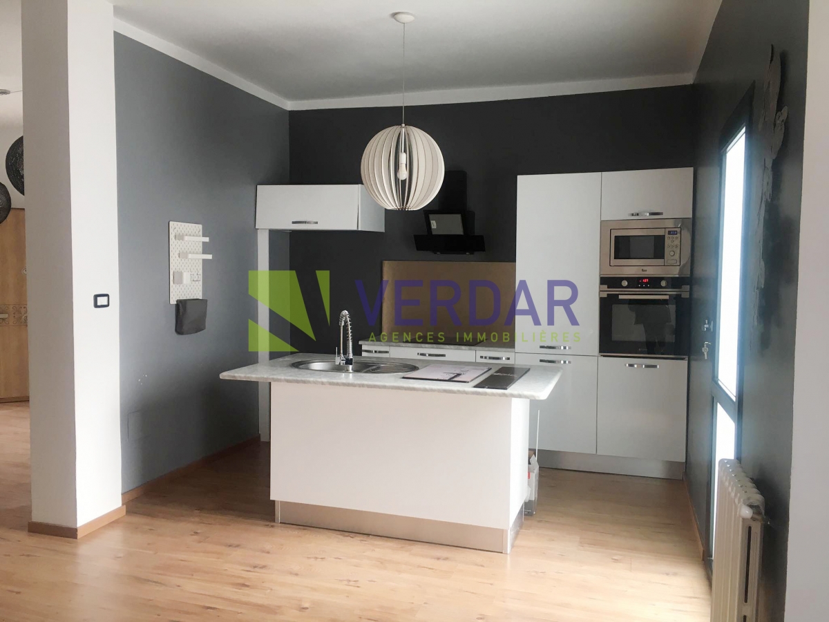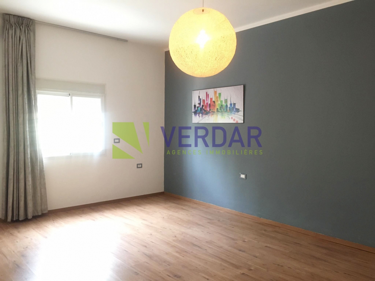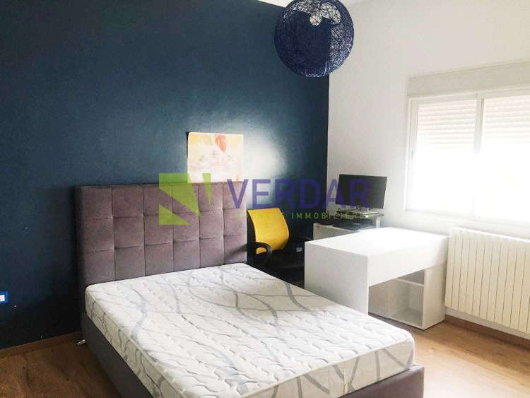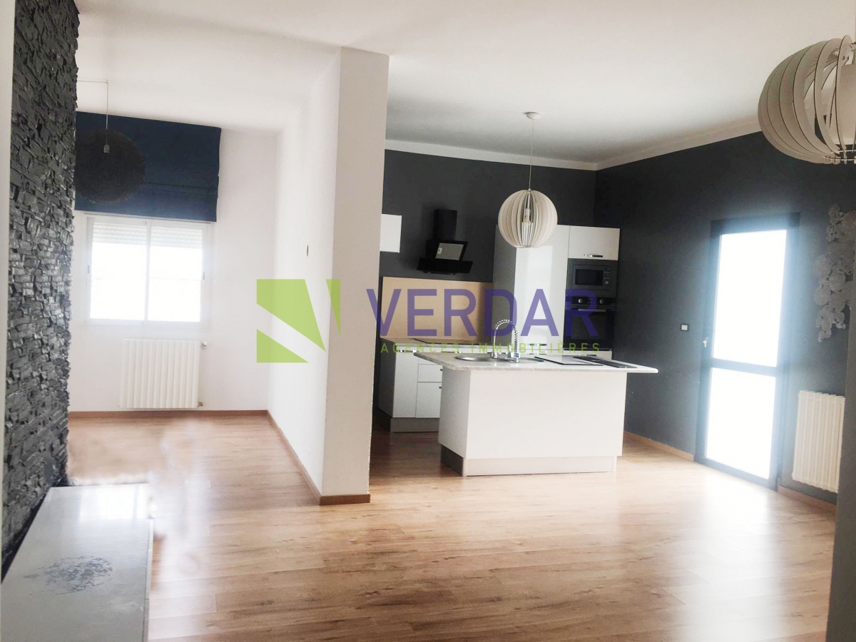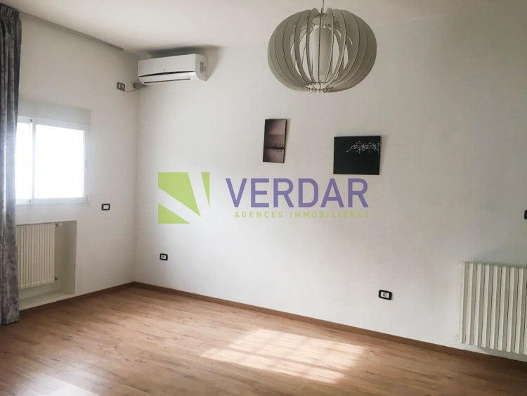 Cet étage est situé dans un quartier calme et résidentiel à Sidi Rezig. L’entrée donne à droite sur un salon lumineux grâce à ses ouvertures. Dans la continuité on trouve une cuisine américaine, aménagée et équipée d'une plaque de cuisson, d'une hotte aspirante et d'un four électrique. Une salle d’eau pour les invités complète la partie jour. Le compartiment nuit abrite deux suites parentales chacune avec sa propre salle de douche dont une est avec sa chambre de dressing. Le chauffage central et la climatisation par Split-système sont disponibles. Une entrée de deux voitures est réservée pour les futures locataires.