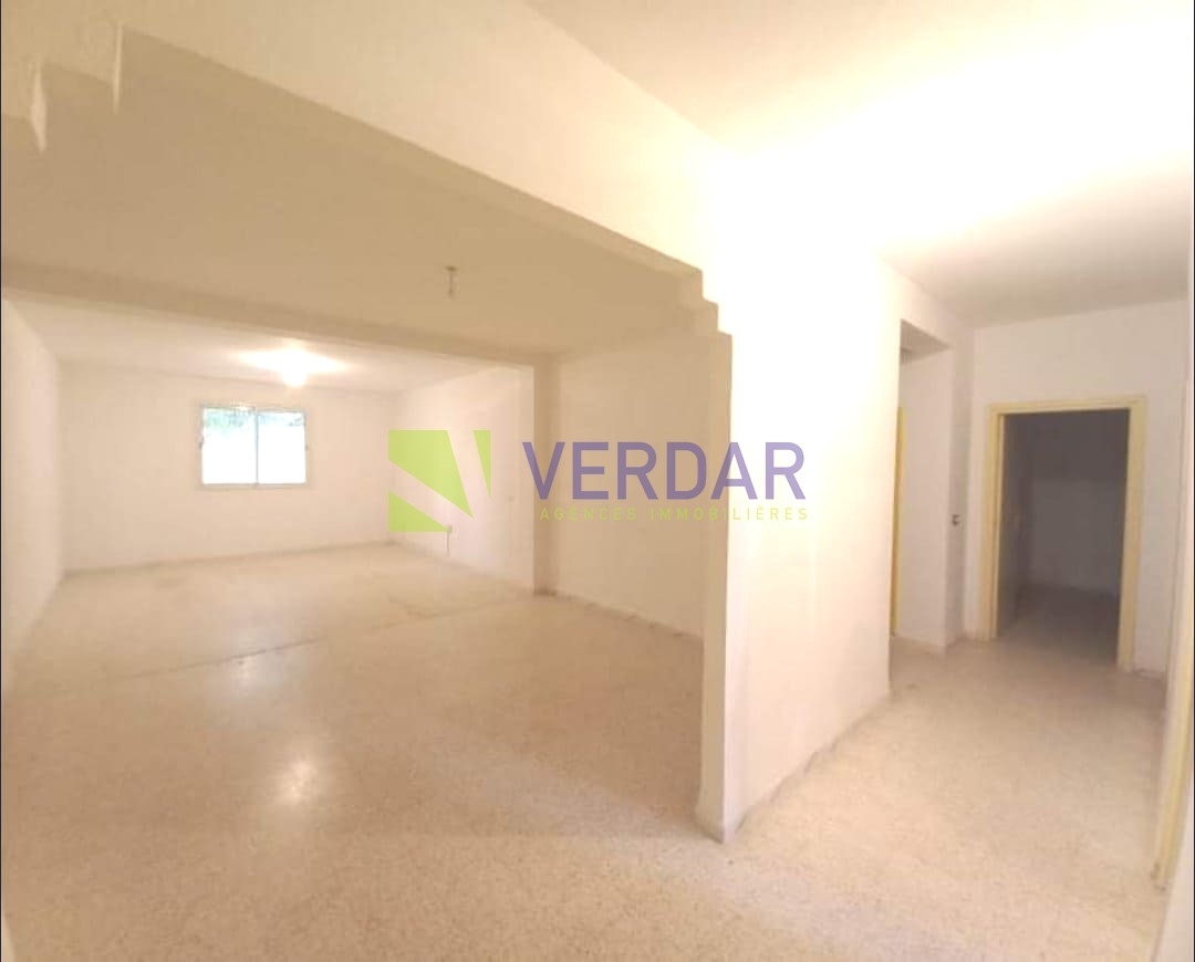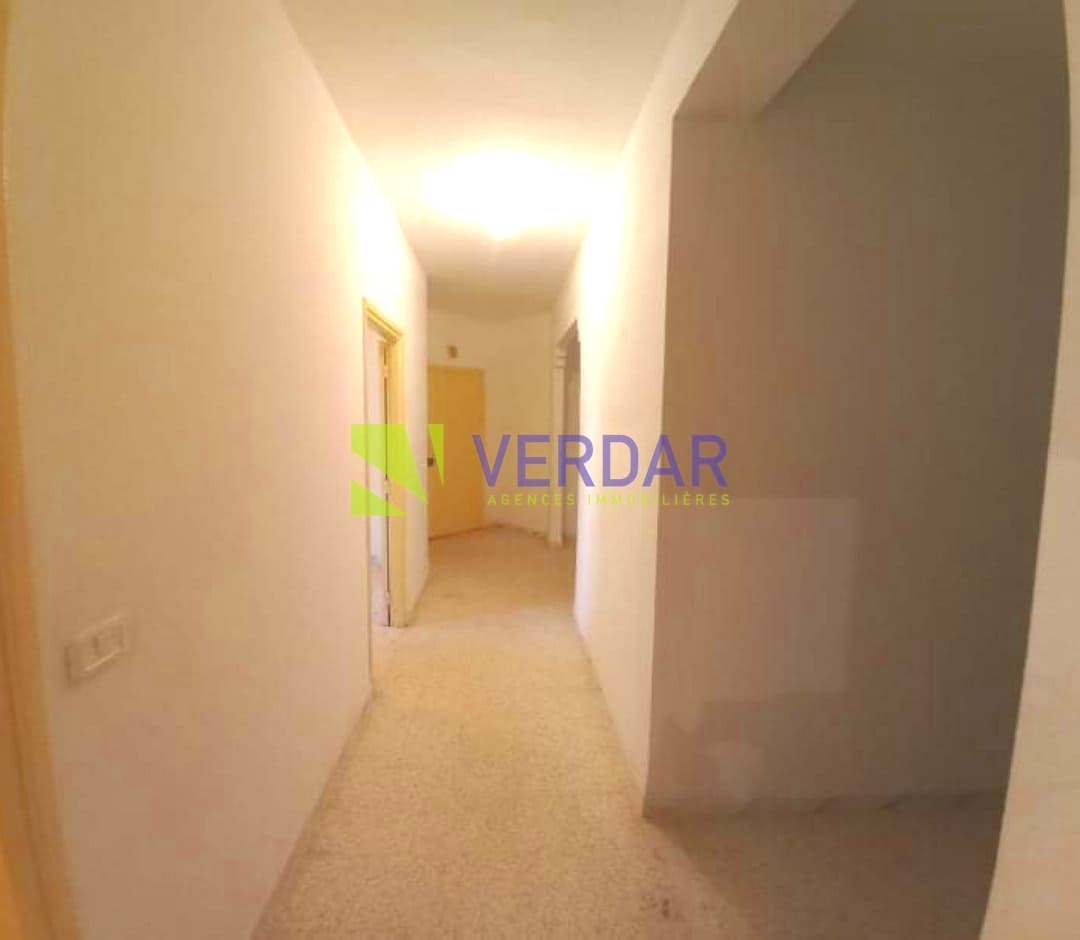 Cet appartement est situé au rez-de-chaussée d’une résidence calme et sécurisée à Mourouj 5. L’entrée donne sur un hall qui dessert à gauche un salon lumineux grâce à ses ouvertures. La cuisine est aménagée et annexée par un séchoir exploitable. Le compartiment nuit abrite trois chambres à coucher qui se partagent une salle de bain. Un abri de voiture est disponible.