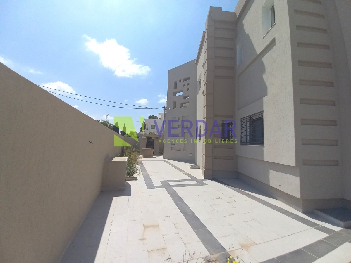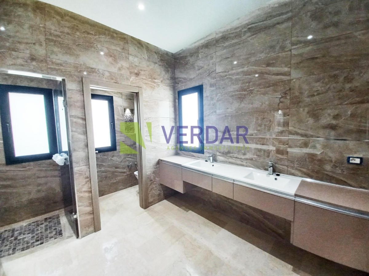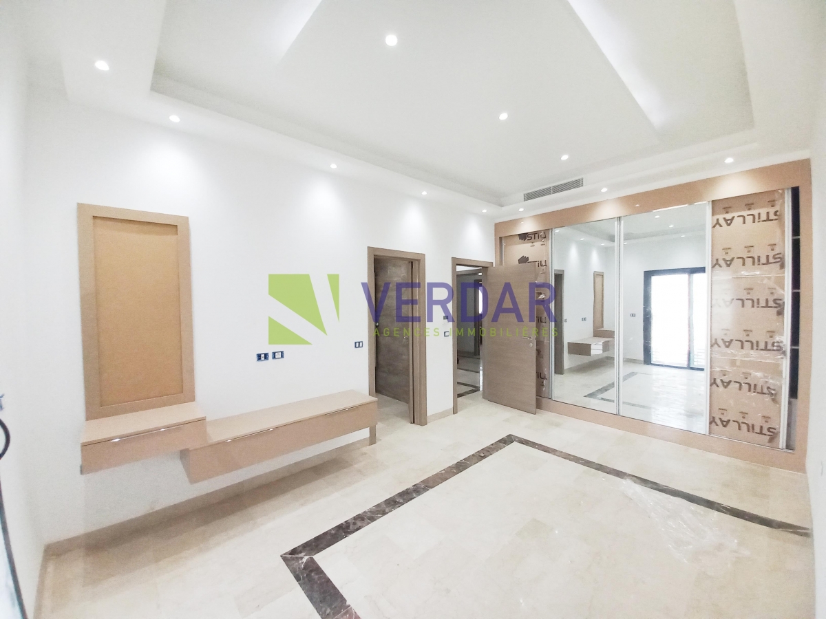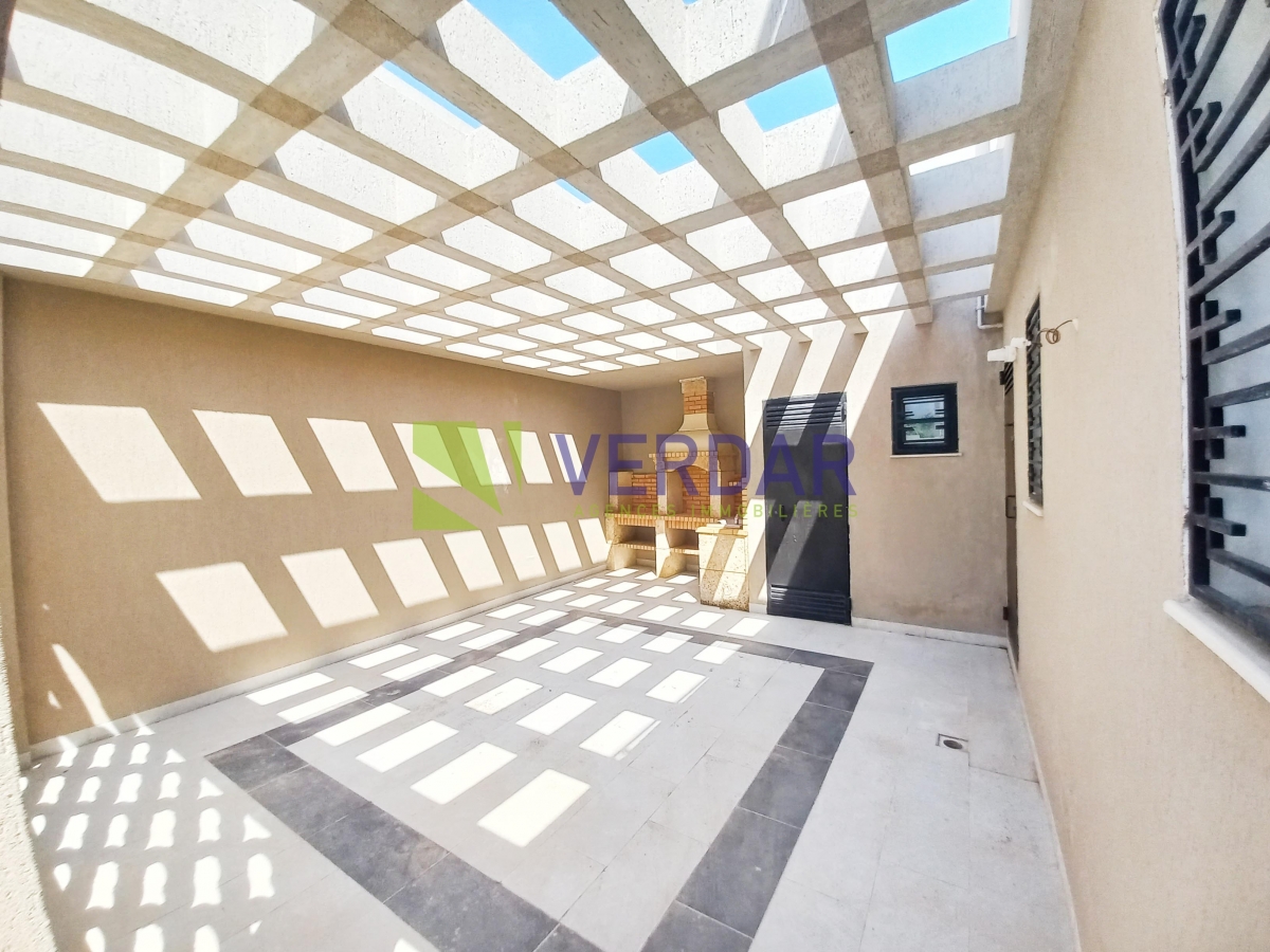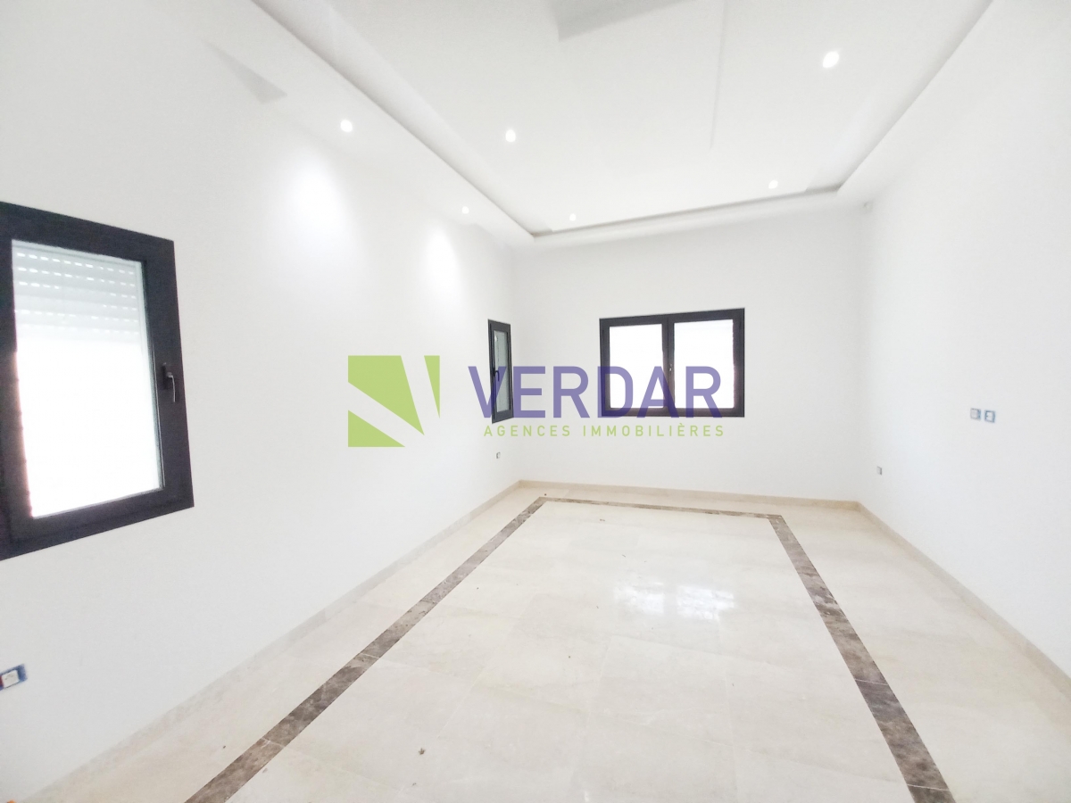 Cette villa est située dans un quartier calme et résidentiel, érigée sur deux niveaux sur un terrain de 840m². L'entrée donne sur un hall qui dessert le salon, cet espace est caractérisé par son volume généreux qui permet d'aménager deux salons et une salle à manger. La cuisine est aménagée de rangements pratiques et fonctionnels, elle donne sur une deuxième cuisine et une salle à manger. Cet étage est complété par un séjour, une cuisine externe et une salle d’eau pour les invités. Au premier étage, on découvre trois suites dont une avec sa chambre de dressing et sa propre salle de douche et deux suites avec salle de douche, deux chambres à coucher et une salle de bain commune sont disponibles. Le rez-de-jardin se compose d’une salle d’eau, une chambre de gardien, une espèce peut être utilisée comme salle de sport et un débarrât qui donne accès à l’espace extérieur où on trouve un garage qui abrite trois voitures. Cette propriété est équipé d’un chauffage central, système d’alarme, des caméras de surveillance et climatisation centrale.