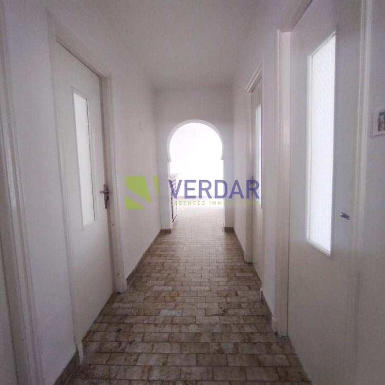 Cet étage de villa est situé au premier étage dans un quartier calme et résidentiel à Sidi Rezig. Le salon est éclairé grâce à sa fenêtre et son balcon. La cuisine est aménagée par des espaces de rangement. La partie nuit abrite trois chambres à coucher qui se partagent une salle de bain.