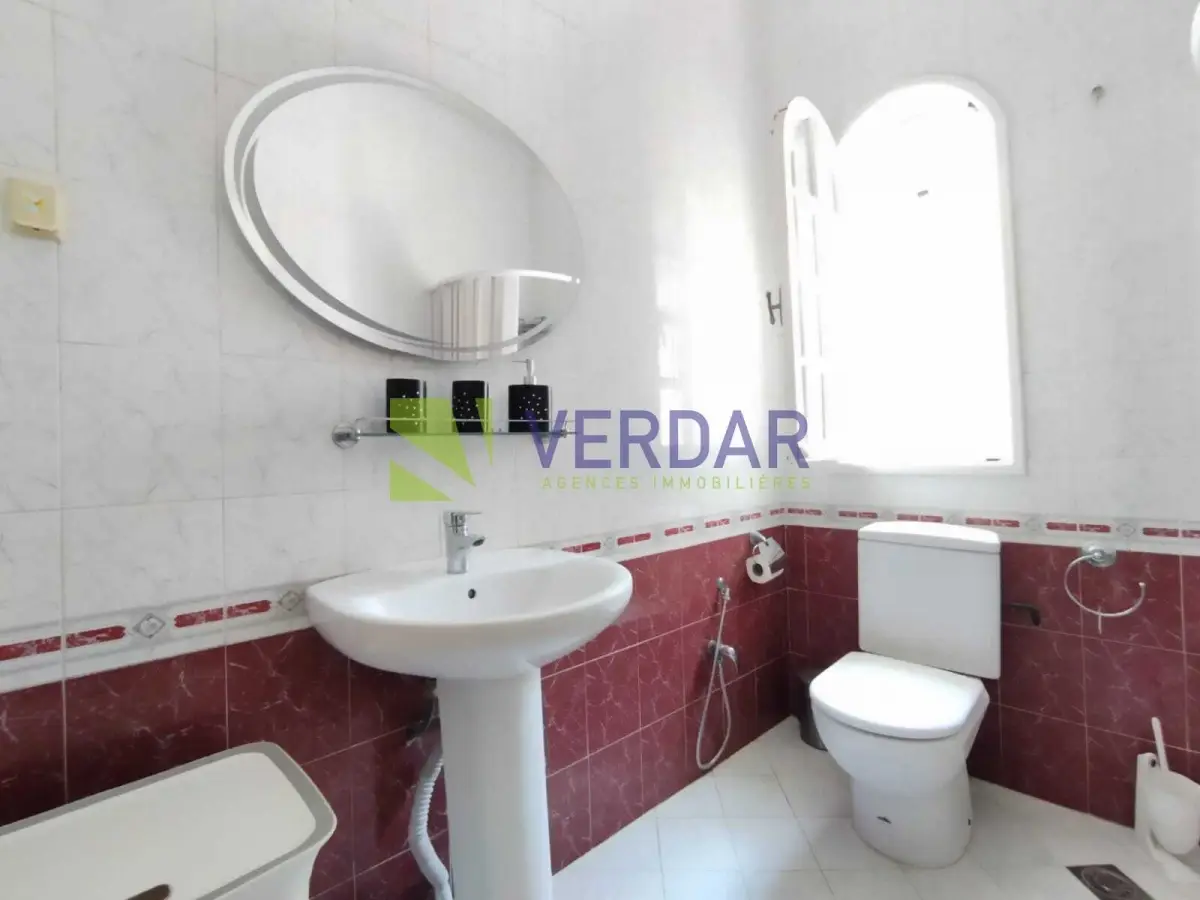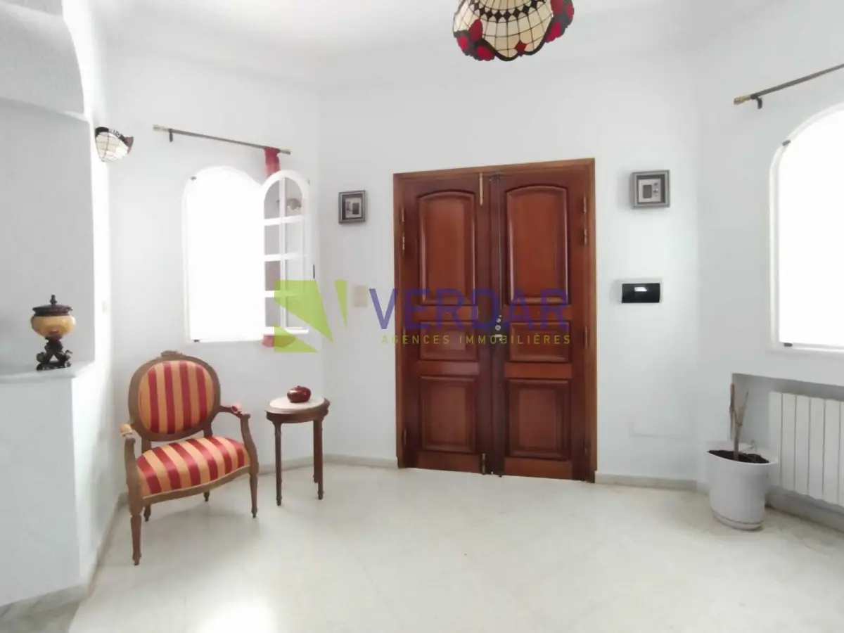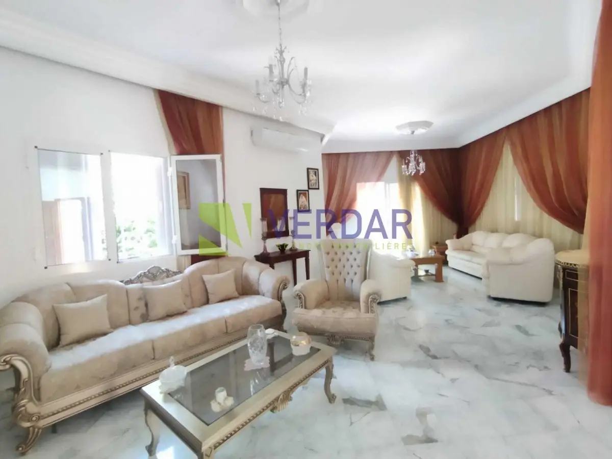 Une Villa S+4 de 280 m² sur un terrain de 500 m², située dans un quartier calme et sélectionné à Boumhel, proche de toutes les commodités, doté d'un bon voisinage. Elle est composée d’un grand salon avec un séjours, trois chambres à coucher, une chambre dressings, une salle de bain et une salle d’eau avec cabine de douche. Cette belle Villa est entourée par un jardin avec un espace gazonné en face le salon, et un garage de 20 m². Le chauffage central et la climatisation en Split système sont disponibles.