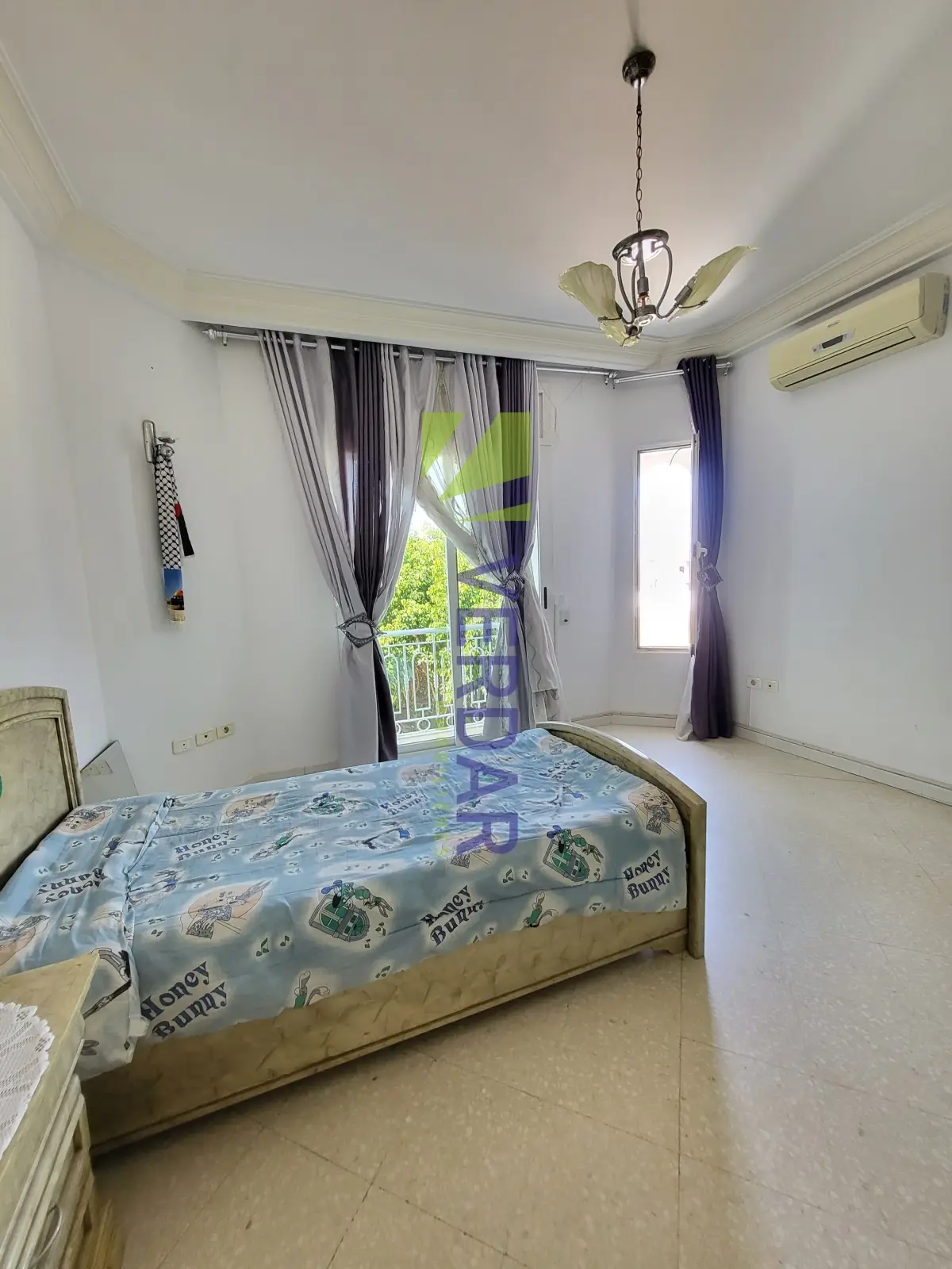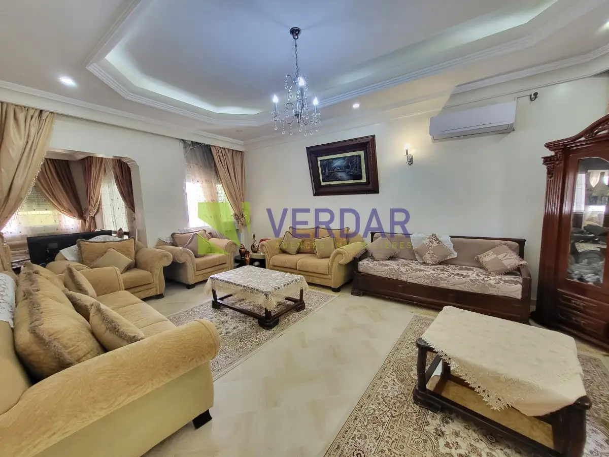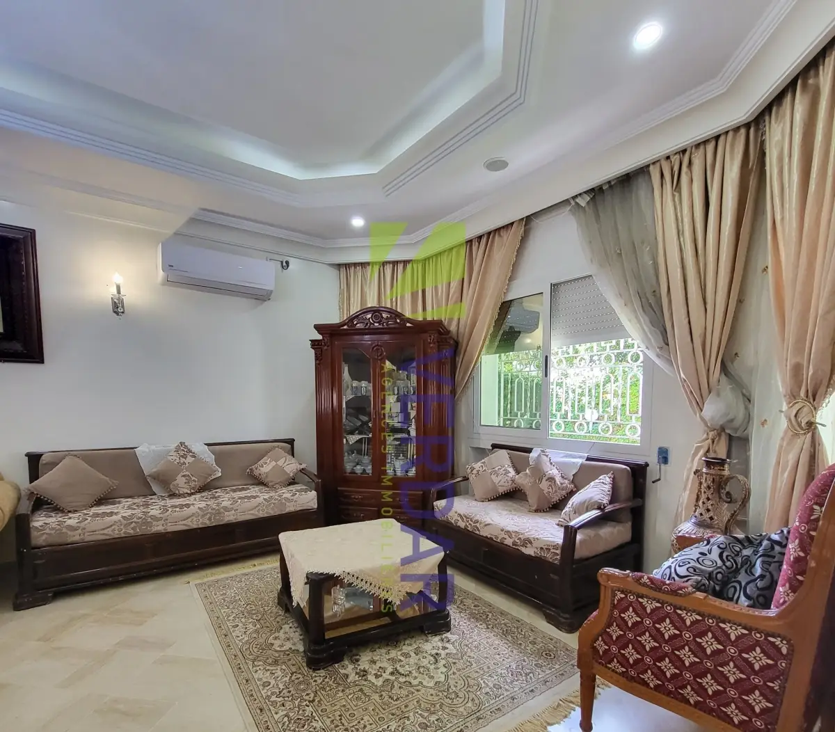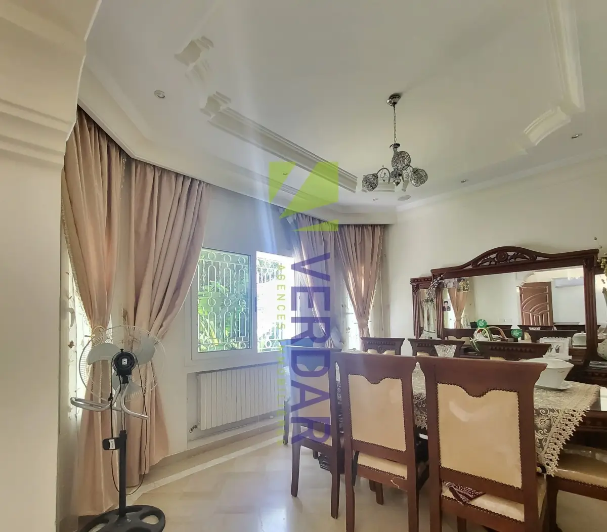 Cette Villa est située dans un quartier calme et résidentiel à Mornag, elle est entourée par un jardin planté.  L’entrée donne sur un hall qui désert à un séjour et un double salon qui constituent la partie jour. La cuisine entièrement équipée et aménagée, elle ouvre sur la terrasse. Une salle d'eau pour les invités complète ce niveau.  A l’étage on découvre trois chambres à coucher avec dressing, dont une avec balcon, qui se partagent une salle de bain et une salle d'eau.  Cette villa est équipée par le chauffage central et la climatisation par split système .