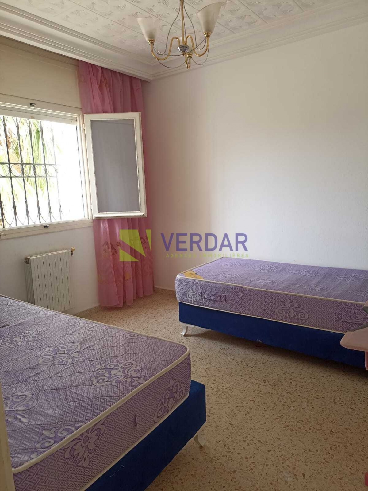 Cet Appartement S+3 au rez-de-chaussée, situés dans une résidence calme et sécurisée à Ezzahra. L'entrée donne sur un salon inondé de lumière naturelle grâce à son ouverture sur une terrasse jouissant d'une vue dégagée, La cuisine est aménagée et équipée par une plaque, four, lave-vaisselle et une machine à laver, elle donne accès à un grand séchoir. Dans la continuité on trouve 3 chambres à coucher, une salle de bain et une salle d'eau. L’appartement est équipé par un chauffage central et deux climatiseurs. Une place de parking extérieur est disponible.