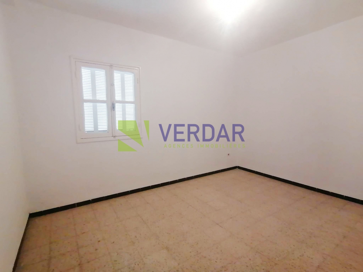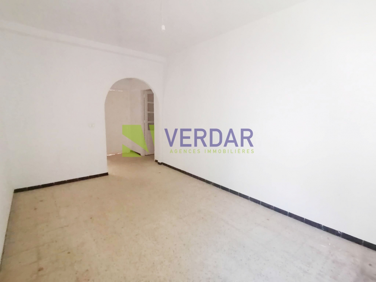 Ce rez-de-chaussée est situé dans un quartier calme et proche de toutes les commodités à La Nouvelle Madina. L'entrée donne sur un hall d'accueil, qui dessert la pièce principale. Cet espace de vie jouit d'une lumière naturelle grâce à son ouverture sur une terrasse. La cuisine est aménagée. Elle est complétée par un séchoir. La partie nuit se compose de deux chambres à coucher dont une est munie avec sa propre placard qui se partagent une salle de bain commune. Une place de parking est disponible.