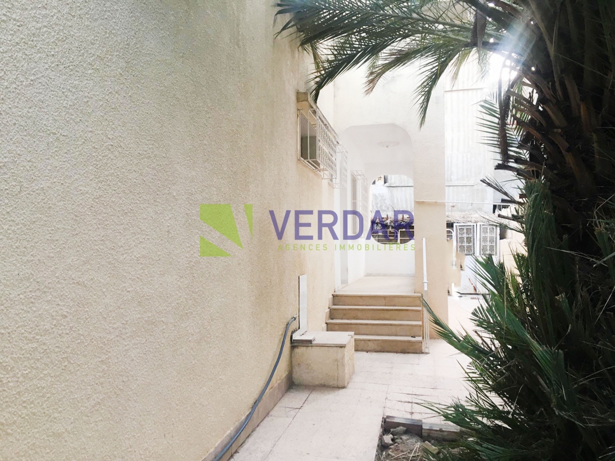 Cette demeure se situe dans un quartier calme et sécurisé à El Yasminet. Elle bénéficie d’un jardin et une terrasse. Le hall d’entrée désert un salon lumineux grâce à son ouverture sur une terrasse. La cuisine est aménagée par des espaces de rangement, elle ouvre sur le jardin. La partie nuit dessert trois chambres à coucher dont une avec placard et une salle de bain commune. Une place de parking est disponible.