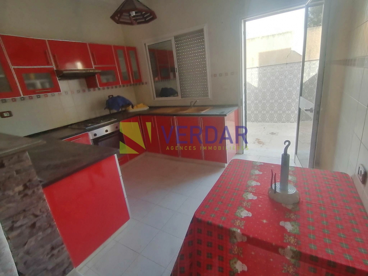 Ce rez-de-chaussée est situé dans un quartier calme et proche de toutes les commodités à Rades Mongil. L'entrée donne sur la pièce principale. Cet espace de vie jouit d'une lumière naturelle grâce à ses ouvertures. La cuisine est équipée et aménagée par des éléments de rangement. La partie nuit se compose d'une suite parentale avec sa propre salle de douche. Une salle de bain complète la partie nuit. Une place de parking est disponible.