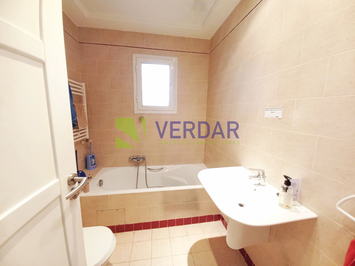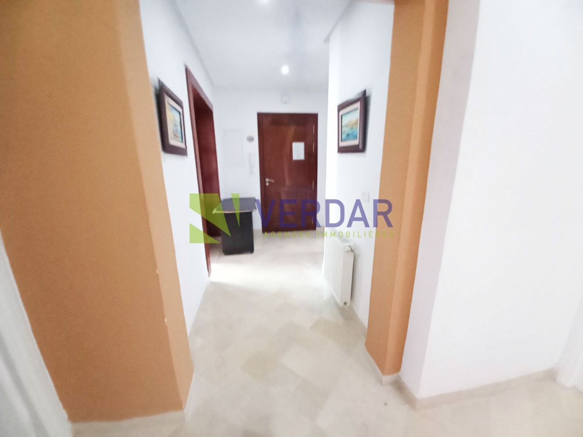 Cet appartement est situé au deuxième étage dans un quartier calme et sécurisée à Rades Plage. L'entrée donne à droite sur la pièce principale. Cet espace de vie jouit d'une lumière naturelle grâce à son ouverture sur un balcon. La cuisine est aménagée par des éléments de rangement. Elle donne accès à un séchoir exploitable. Une salle d'eau complète la partie jour. La partie nuit se compose de trois chambres à coucher et une salle de bain commune. Une place de parking est disponible.
