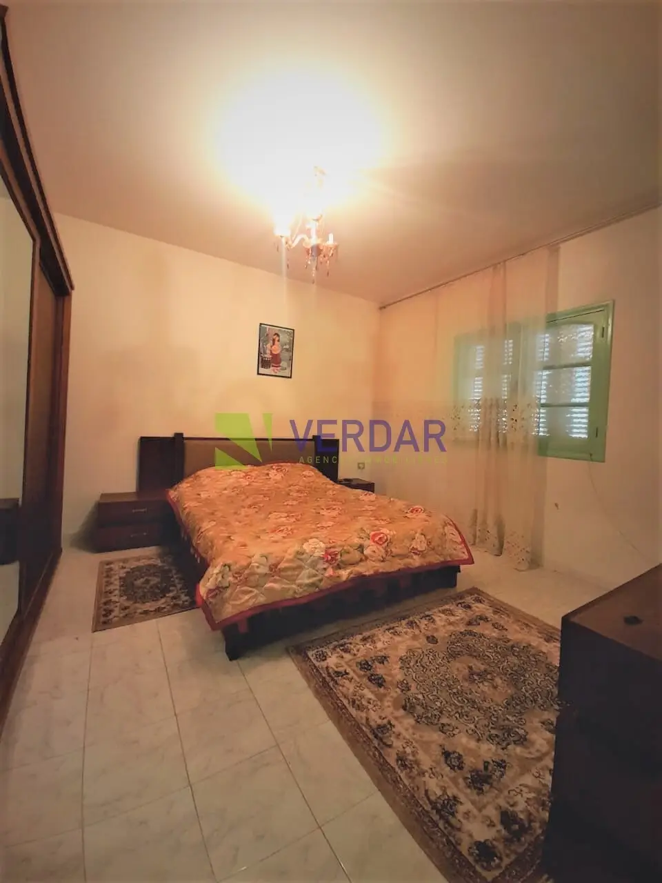 Ce rez-de-chaussée de villa est situé à ezzahra ville. Il est composé d’un grand salon, une cuisine aménagée et une salle de bain. La partie nuit abrite trois chambres à coucher dont une avec placard. À l'extérieur un jardin et un garage pour la voiture sont également disponibles.