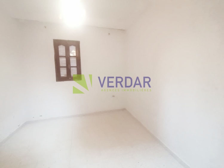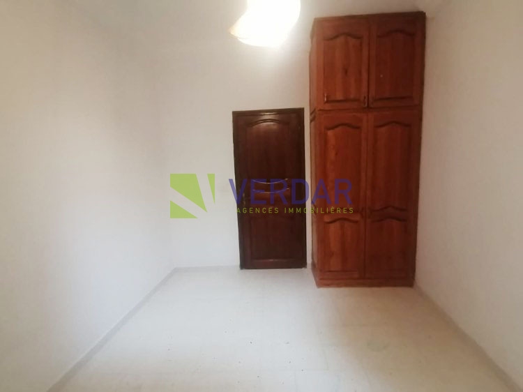 Ce réz-de-chaussée est situé dans un quartier calme et résidentiel à La Nouvelle Madina. L'entrée donne sur la pièce principale. Cet espace de vie jouit d'une lumière naturelle grâce à ses ouvertures. La cuisine est aménagée par des éléments de rangement. Elle ouvre sur une terrasse. IL se compose de trois chambres à coucher qui se partagent une salle de bain commune.
