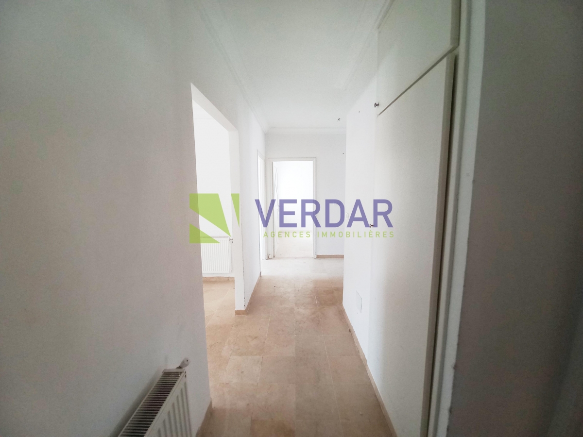 Cet appartement est situé au deuxième étage d'une résidence calme et sécurisée à Mourouj 6. L’entrée donne sur un hall qui dessert à gauche un salon lumineux grâce à son ouverture sur un balcon. La cuisine est aménagée et annexée par un séchoir exploitable. Le compartiment nuit abrite trois chambres à coucher qui se partagent une salle de bain et une salle d'eau. Un abri de voiture est disponible.