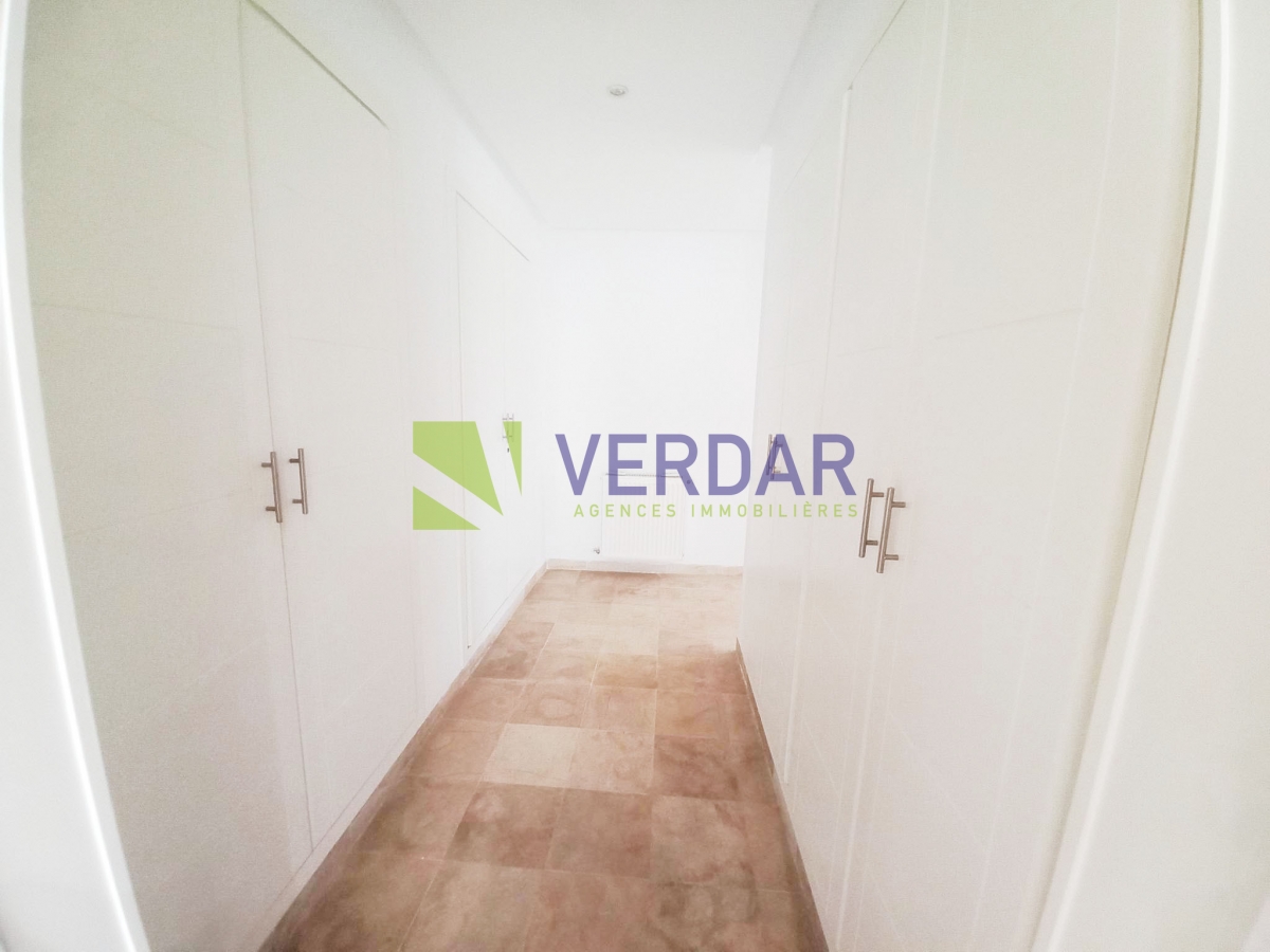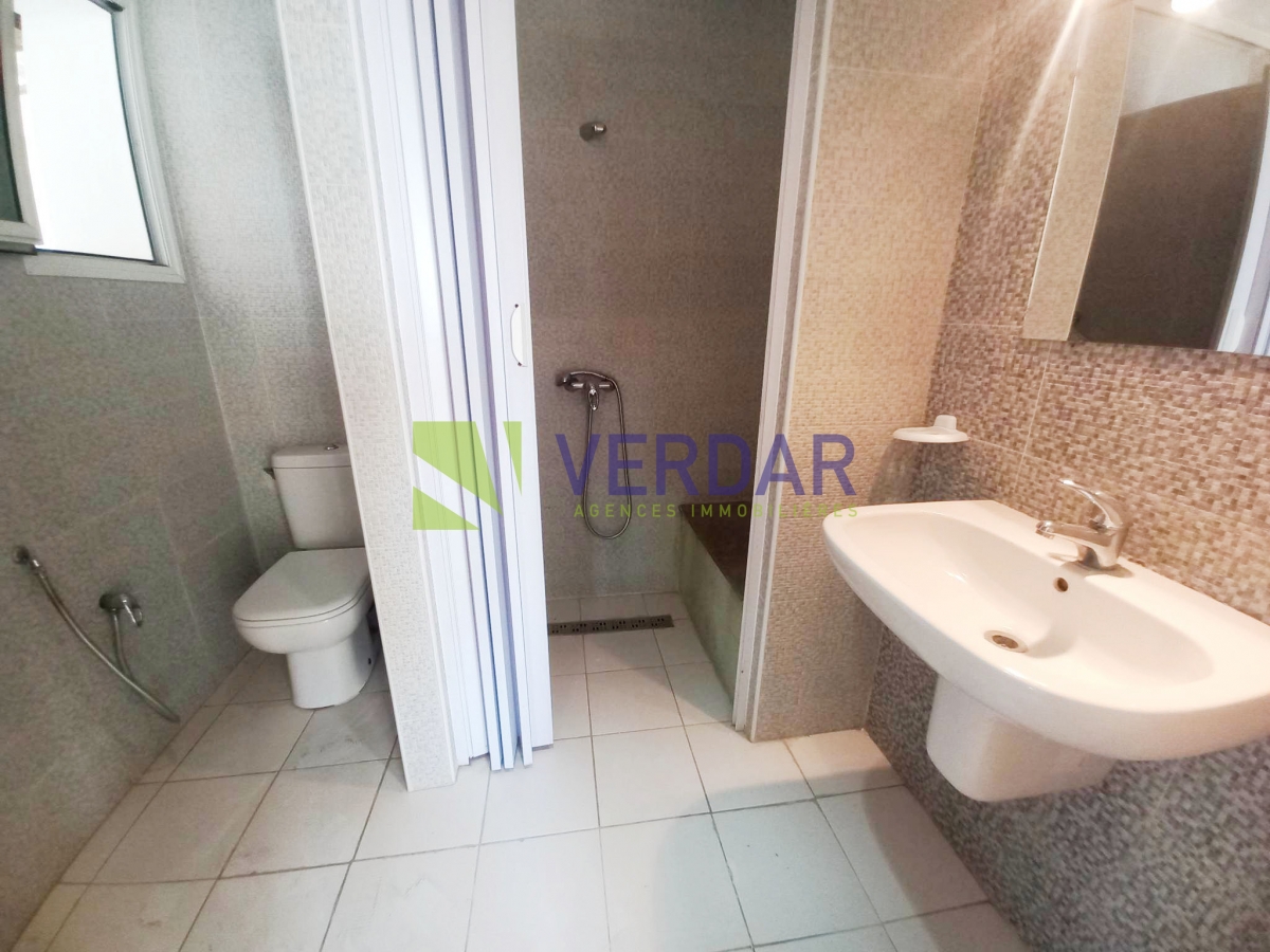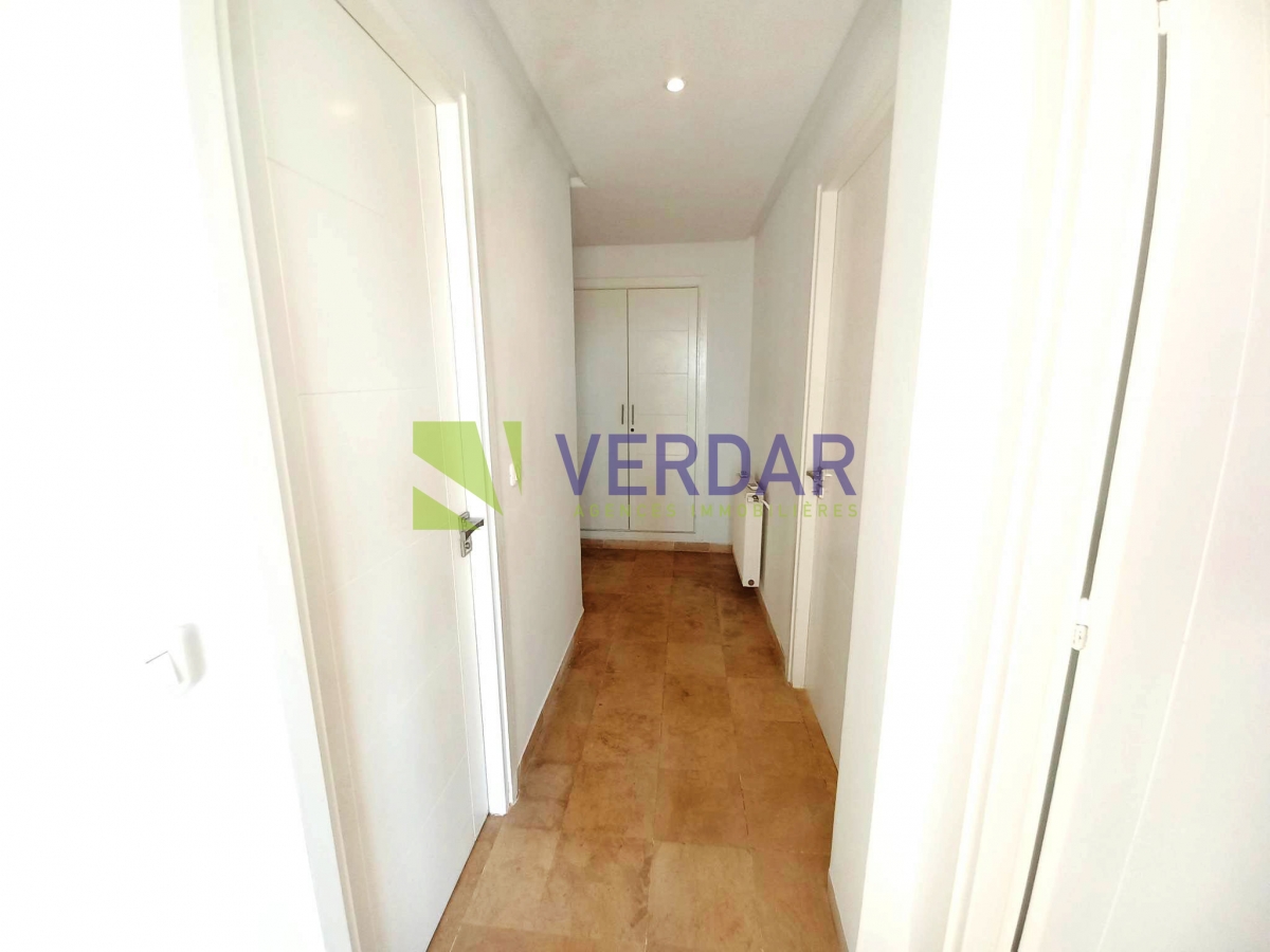 Cet appartement est situé au quatrième étage d'une résidence calme et sécurisée à Mourouj 4. L’entrée donne sur un hall qui dessert à gauche un salon lumineux grâce à son ouverture sur un balcon. Un dressing dans le couloir est disponible pour plus de rangement. La cuisine est aménagée par des éléments de rangement et équipée par une plaque de cuisson, d'une hotte aspirante et ouvre sur un séchoir. Le compartiment nuit abrite trois chambres à coucher qui se partagent une salle de bain et une salle d'eau. Une place de parking est disponible.
