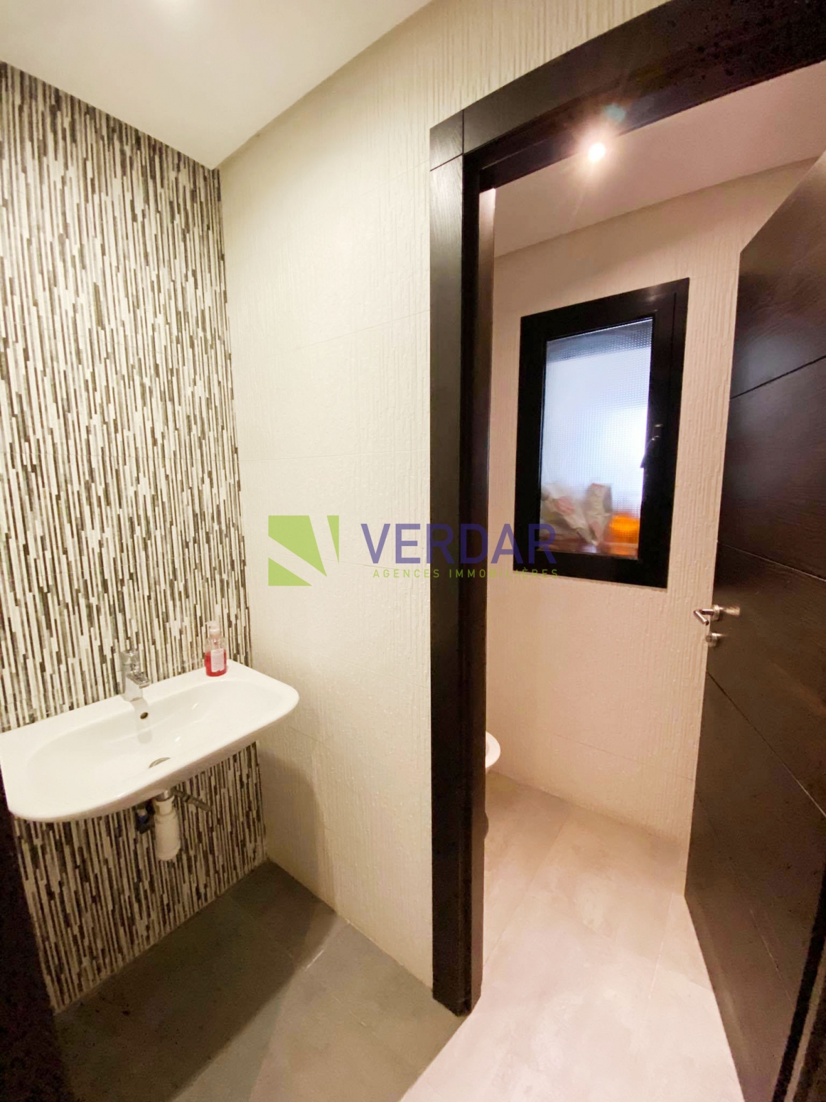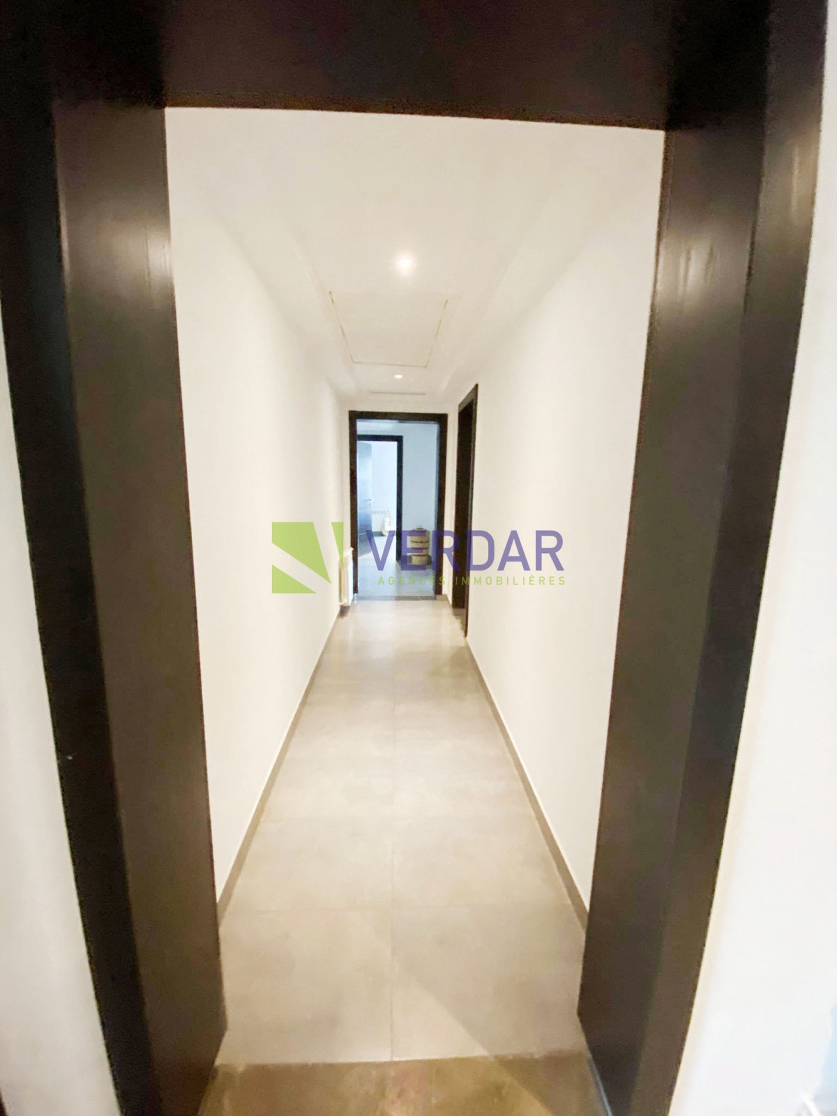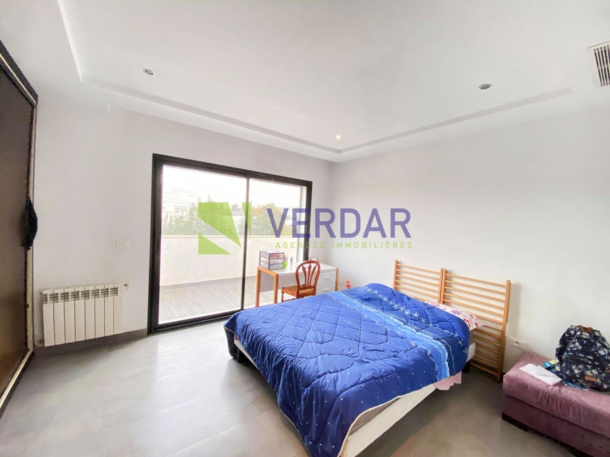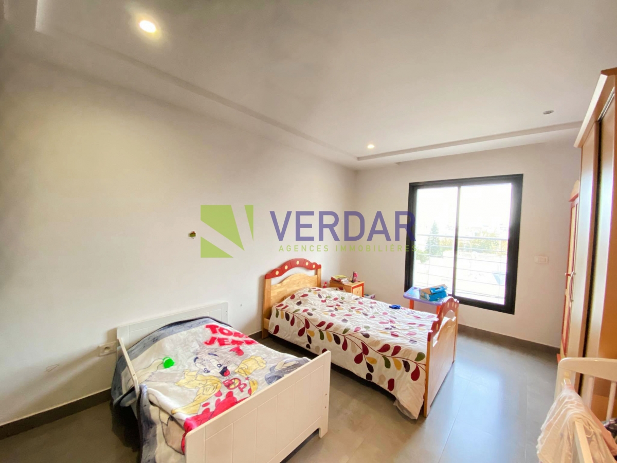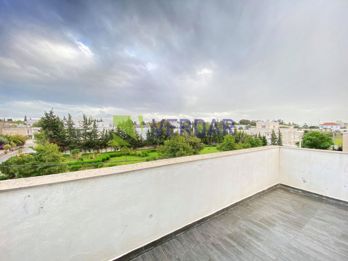 Cet étage de villa est situé dans un quartier calme et résidentiel à Megrine. Il bénéficie d’une entrée indépendante. L'entrée donne sur un hall d’accueil, à gauche on trouve un salon avec un volume généreux qui permet de placer un salon et une salle à manger. Cette pièce bénéficie d'une ouverture sur un balcon. La cuisine est agencée et équipée d'une plaque de cuisson, d'un four électrique et d'une hotte aspirante. Elle est complétée par un séchoir. La partie nuit se compose trois chambres à coucher avec dressing qui se partagent une salle de bain et une salle d'eau. Une place de parking est disponible.