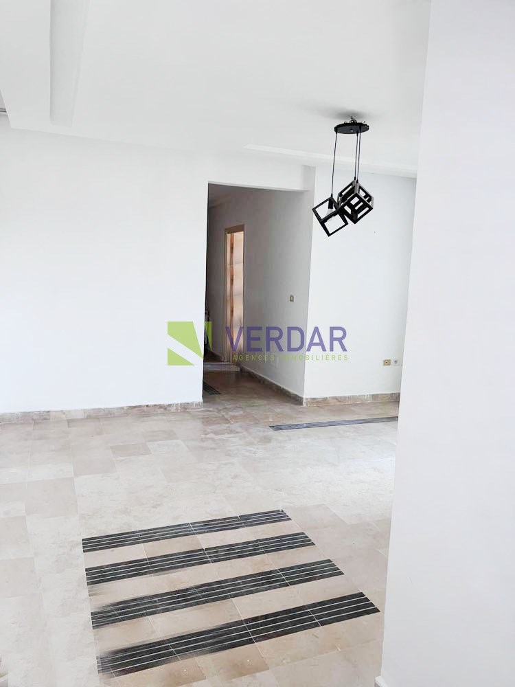 Cet appartement est situé au premier étage d'une résidence gardée et proche de toutes les commodités à La Nouvelle Madina. L'entrée donne sur la pièce principale. Cet espace de vie jouit d'une lumière naturelle grâce à son ouverture sur un balcon. La cuisine est aménagée par des éléments de rangement. Elle donne accès à un séchoir exploitable. Une salle d'eau complète la partie jour. Un dressing est disponible au niveau de couloir pour plus de rangement. La partie nuit se compose de trois chambres à coucher dont deux avec dressing et une salle de bain commune. Une place de parking est disponible.