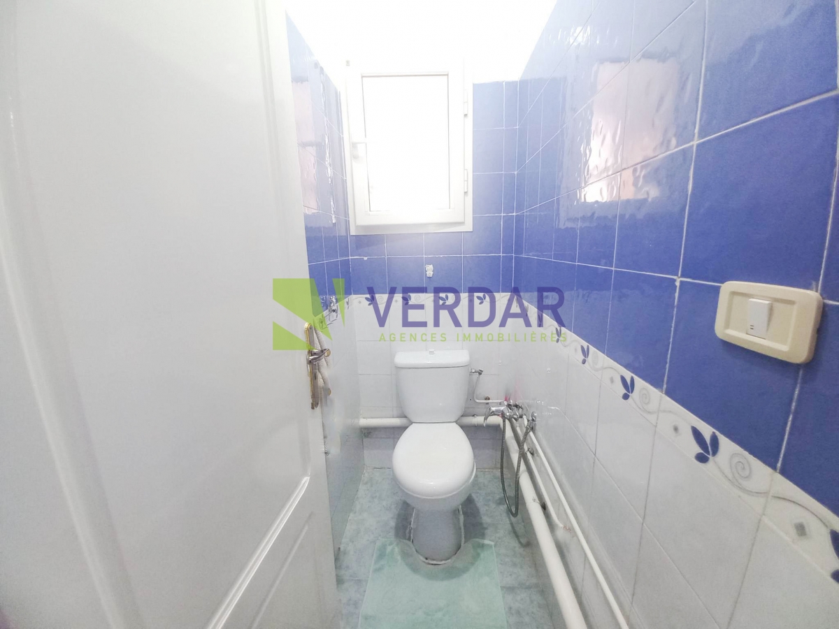 Cet appartement est situé au premier étage dans un quartier calme et proche de toutes les commodités à La Nouvelle Madina3. La pièce de vie jouit d'une luminosité naturelle grâce à son ouverture sur un balcon. La cuisine est aménagée par des éléments de rangement et équipée par une hotte aspirante  et ouvre sur un séchoir. La partie nuit se compose de deux chambres à coucher. Elles se partagent une salle de bain et une salle d'eau. Une place de parking est disponible.