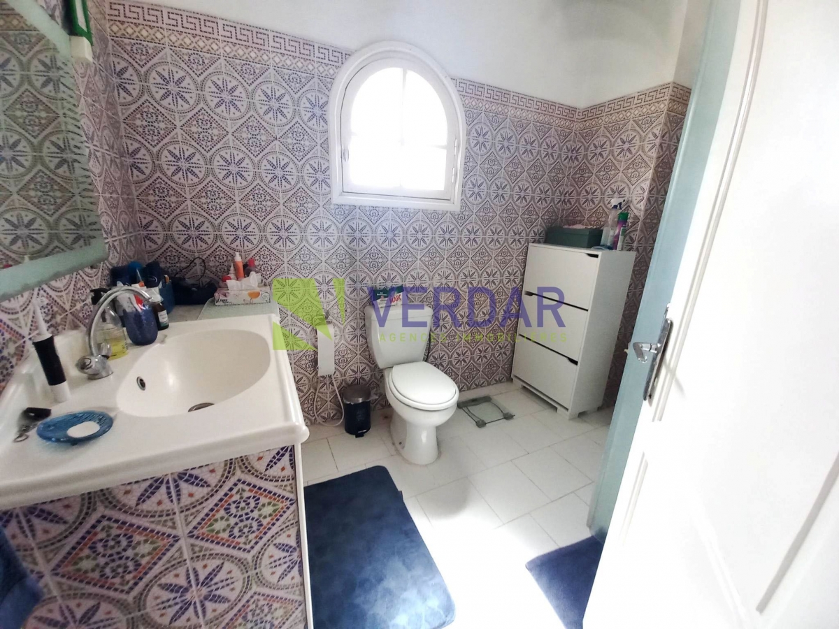 Cet étage de villa est situé dans un quartier calme et résidentiel à Megrine. Il bénéficie d’une entrée indépendante. L'entrée donne sur un hall d’accueil, on trouve un salon avec un volume généreux qui permet de placer un salon et une salle à manger. Cette pièce bénéficie d'une ouverture sur une terrasse. La cuisine est agencée et équipée d'une hotte aspirante. Elle donne accès sur la terrasse. Une salle d'eau pour les invités complète la partie jour. La partie nuit se compose d'une suite parentale et trois chambres à coucher avec dressing qui se partagent une salle de bain. Une entrée de voiture est disponible.