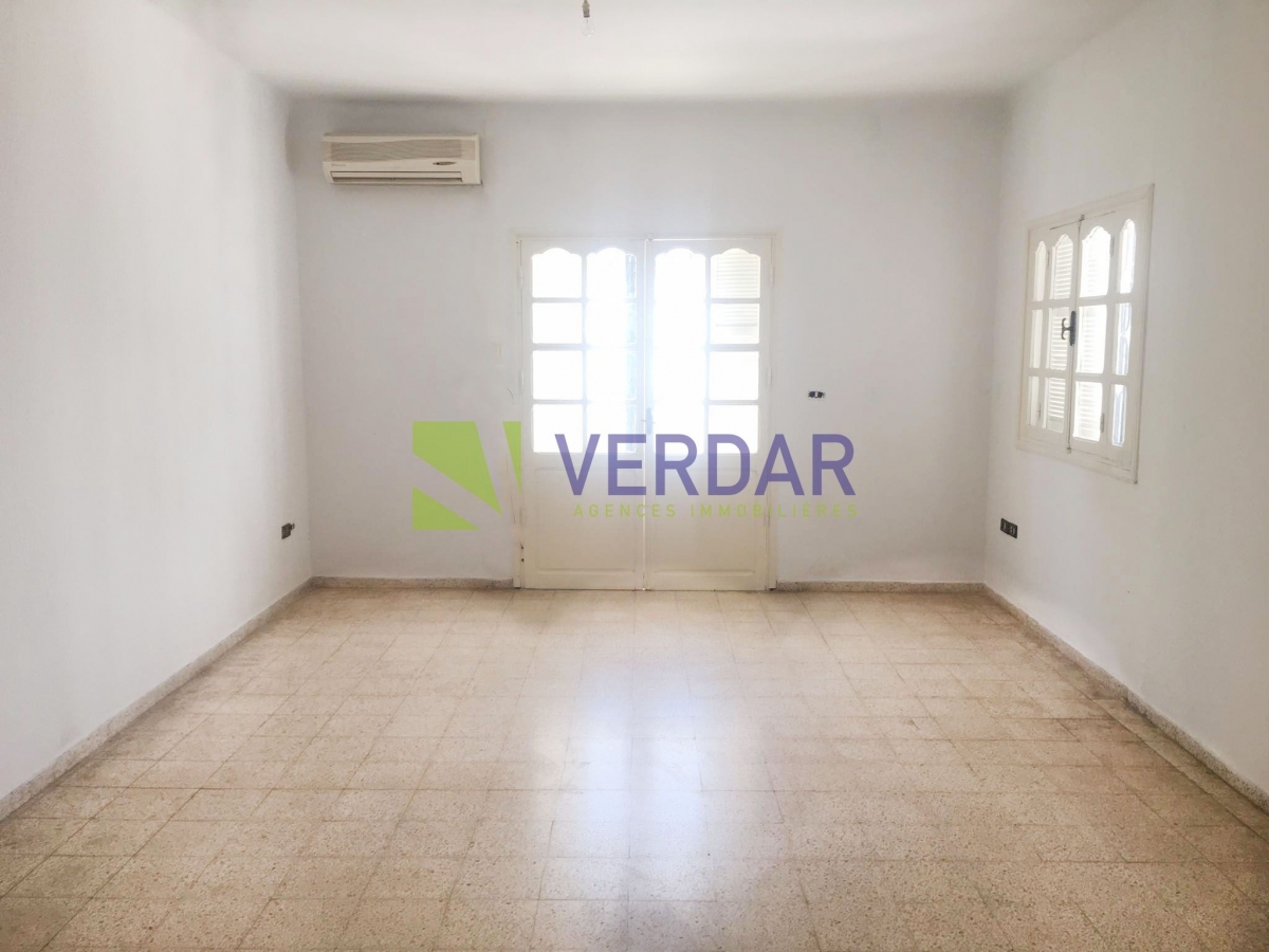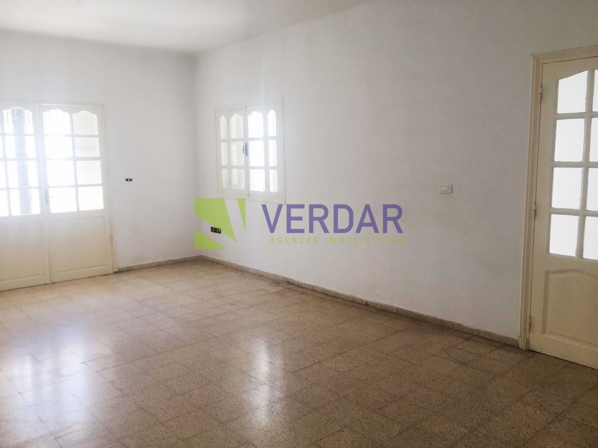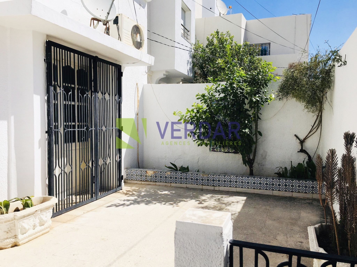 Ce réz-de-chaussée est situé dans un quartier calme et résidentiel à Sidi Rezig. L'entrée donne sur un hall d’accueil, on trouve a droite un salon avec un volume généreux .Cette pièce bénéficie d'une ouverture sur une terrasse. La cuisine est aménagée par des element de rangement. Elle donne accès sur la terrasse. Dans la contuinuité,  on trouve trois chambres à coucher dont une avec placard qui se partagent une salle de bain et une salle d'eau. Une entrée de voiture est disponible.