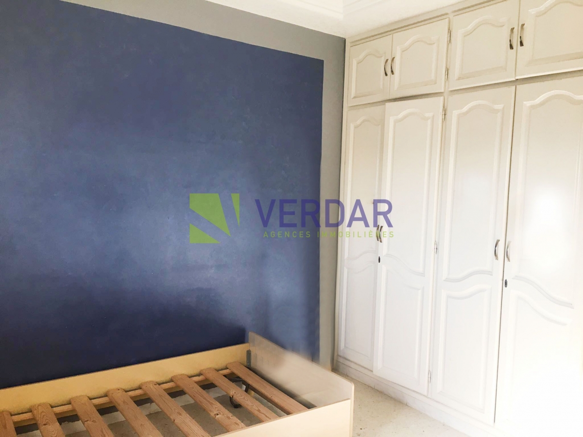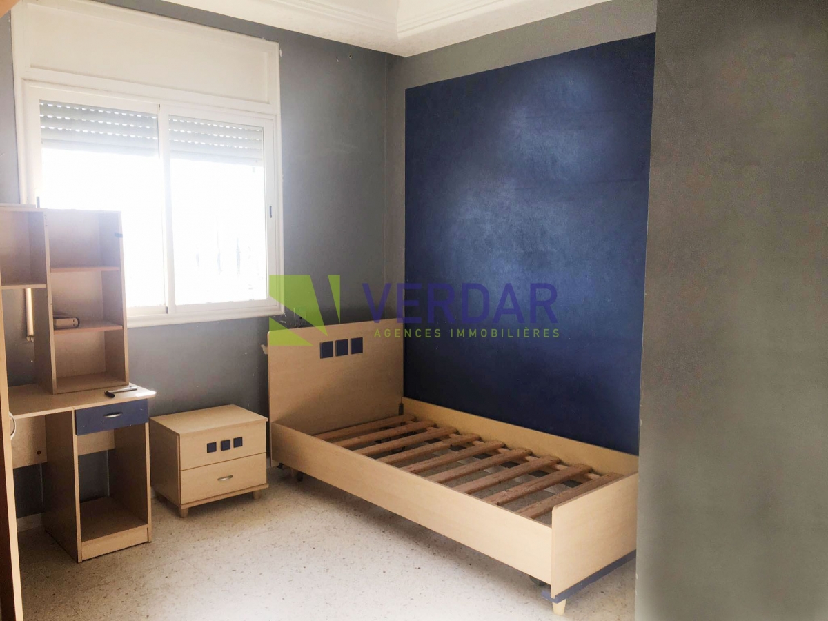 Cet appartement est situé au sixième étage dans un quartier calme et proche de toutes les commodités à La Nouvelle Madina. L'entrée donne sur la pièce principale. Cet espace de vie jouit d'une lumière naturelle grâce à ses ouvertures. La cuisine est aménagée par des éléments de rangement et équipée par une plaque de cuisson, une hotte aspirante et d'un four électrique. Elle donne accès à un séchoir exploitable. Une salle eau complète la partie jour. La partie nuit se compose d’une suite parentale avec sa propre cabine de douche et de deux chambres à coucher chacune est munie avec sa propre placard qui se partagent une salle de bain commune. Une place de parking est disponible.