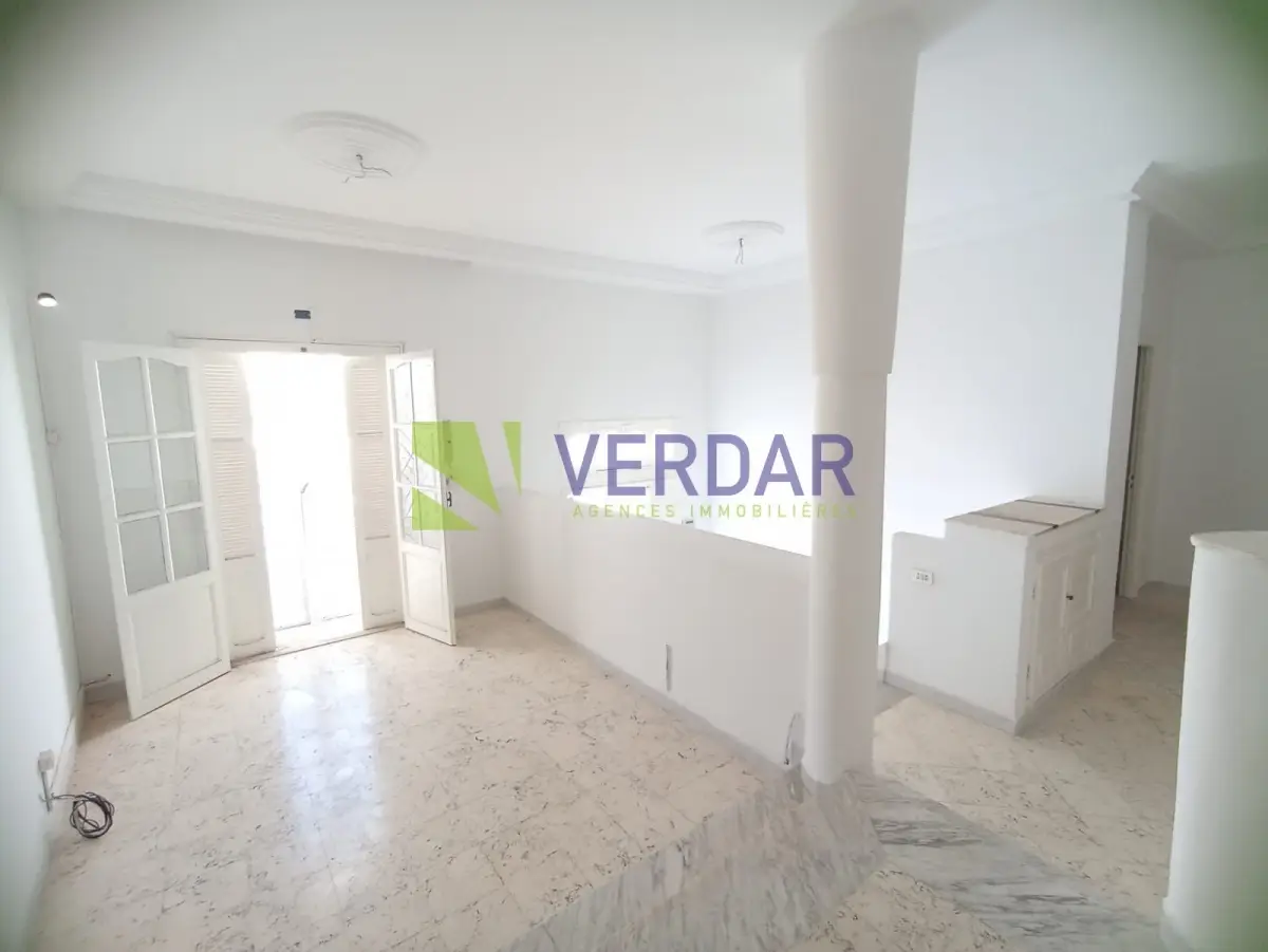 Ce Rez-de-chaussée avec un Rez-de-jardin se situe dans un quartier calme et sécurisé à El Yasminet. Il bénéficie d’un jardin et une terrasse. Il loge un salon lumineux grâce à son ouverture sur un balcon. La cuisine est aménagée par des espaces de rangement, elle ouvre sur le jardin. La partie nuit dessert une suite parentale avec sa propre salle de douche et deux chambres à coucher dont une avec placard et une salle de bain commune. Le rez-de-jardin spacieux peut être utiliser comme bureau, salle de sport et espace de jeux pour les enfants.Deux places de parking au sous-sol sont disponibles.