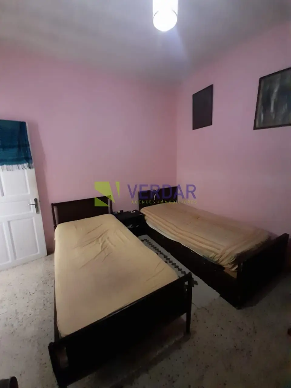 Cette villa est situé dans un quartier calme et résidentiel à Megrine Coteaux. Elle abrite un salon spacieux, une cuisine avec un séchoir exploitable. La partie nuit abrite trois chambres à coucher avec une salle de bain commune.